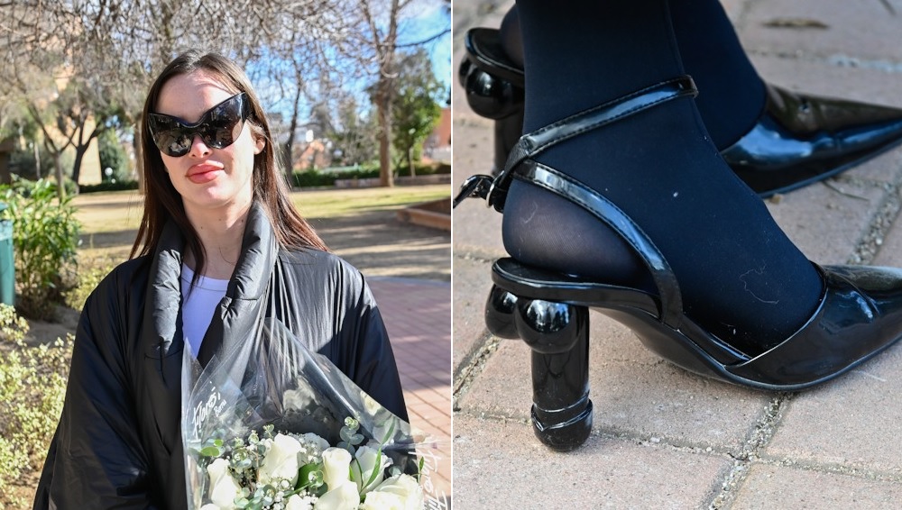 Y si hay algo por lo que la hija de Verónica llama la atención en todas sus apariciones públicas es por su personalidad arrolladora, que refleja a la perfección en todos sus looks. La joven se refugió del frío madrileño con un abrigo acolchado largo, un bolso Balenciaga y unas gafas de sol futuristas que le cubrían la mayor parte del rostro. Pero lo más llamativo fueron sus sandalias negras con tacones en forma de pene.