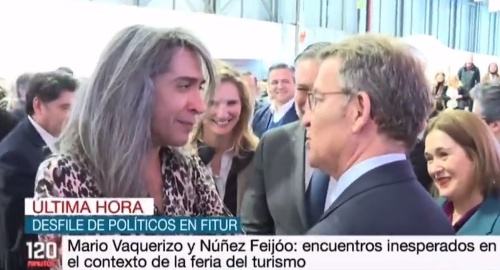 FITUR, que ahora mismo abarrota el Recinto Ferial del Ifema de Madrid, da para muchos encuentros, y sin duda el más curioso e inesperado fue el del cantante Mario Vaquerizo y el líder del PP, Alberto Núñez Feijóo.