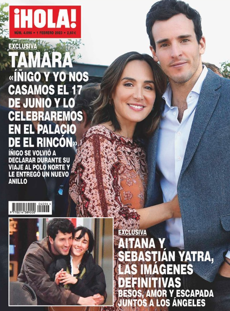 El nuevo número de la revista Hola publicado este miércoles lleva en portada como exclusiva unas declaraciones entrecomilladas de Tamara Falcó en las que confirma que su boda con Iñigo Onieva jamás fue anulada: "Iñigo y yo nos casamos el 17 de junio y lo celebramos en el Palacio de El Rincón". De esta manera, la pareja mantiene fecha y lugar para el convite, por lo que nunca anularon los planes iniciales a pesar de su sonada ruptura tras salir a la luz unas imágenes del empresario besando a otra chica durante un festival de música.
