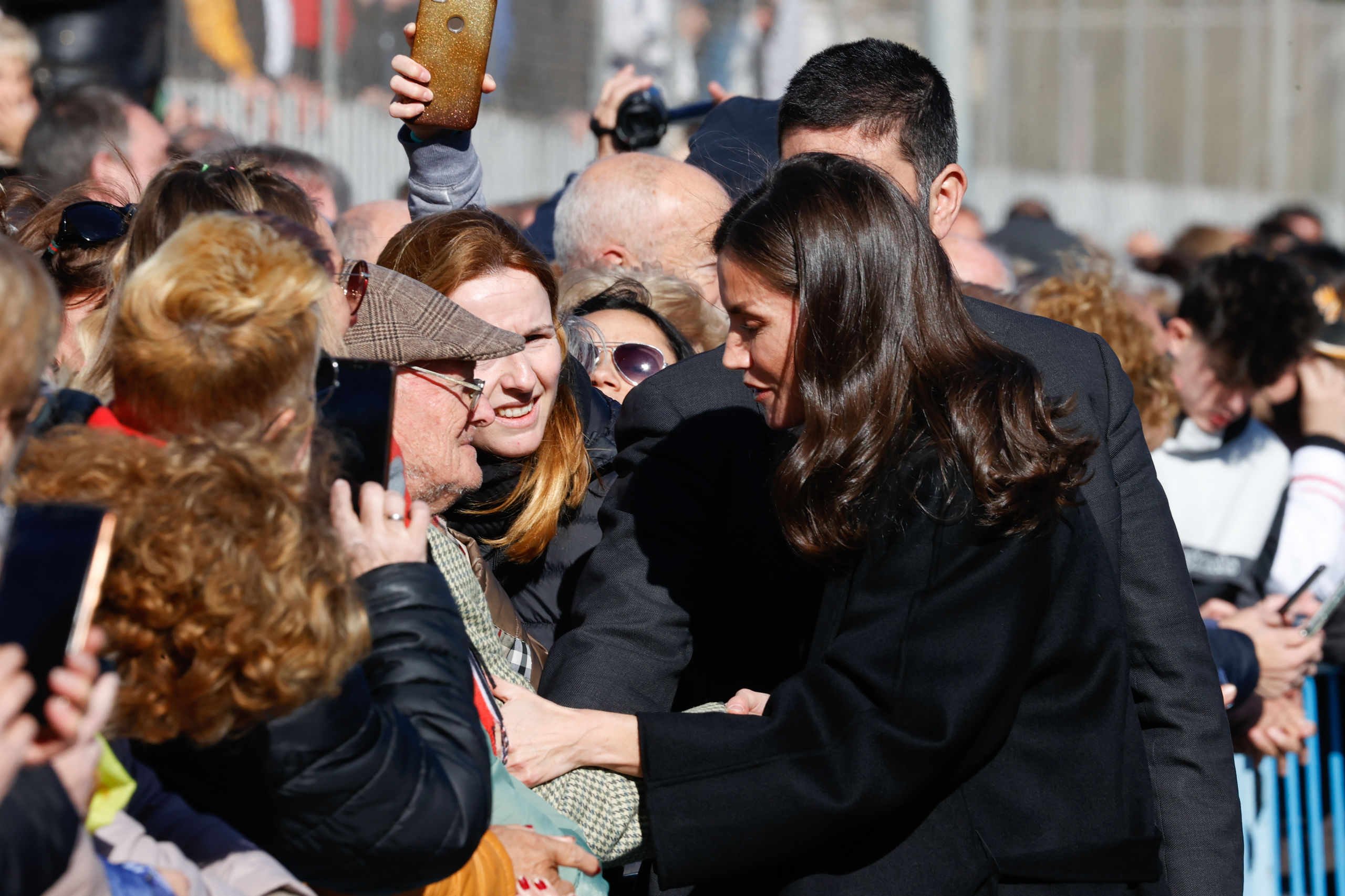 A su llegada a Petrer (Alicante) la Reina fue recibida por decenas de vecinos que se acercaron a darle un cariñoso saludo. Doña Letizia dio la mano con gusto a todos ellos y charló durante un rato.