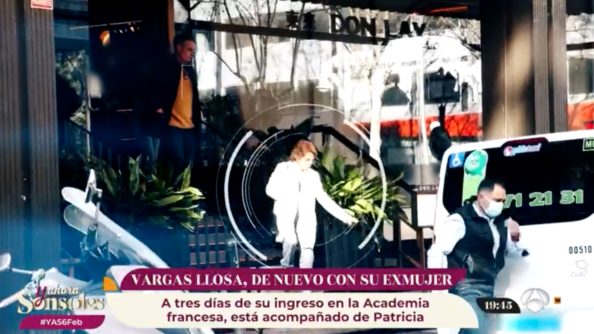 Las imágenes de Y ahora Sonsoles no dan lugar a equivoco posible: Vargas Llosa aparece de nuevo con Patricia Llosa a solo tres días de su ingreso en la Academia Francesa, este pasado domingo. Un evento que ahora concentra toda la atención del peruano pese al descrédito al que está siendo sometido por ciertas extensiones mediáticas de Isabel Preysler.