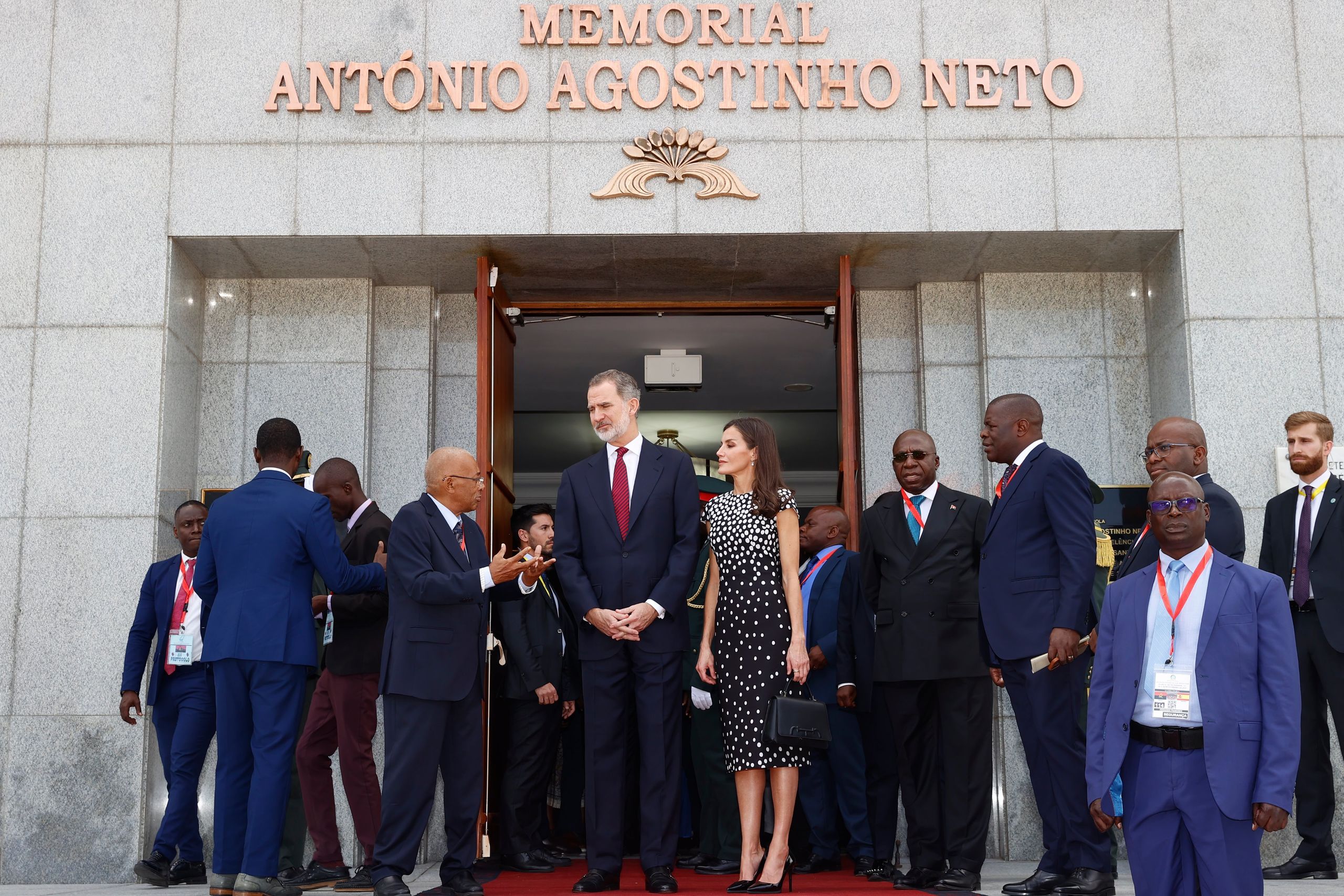Este martes, los Reyes iniciaron sus actividades con una visita al Memorial Agostinho Neto acompañados por el ministro de Relaciones Exteriores de Angola, Tète António.