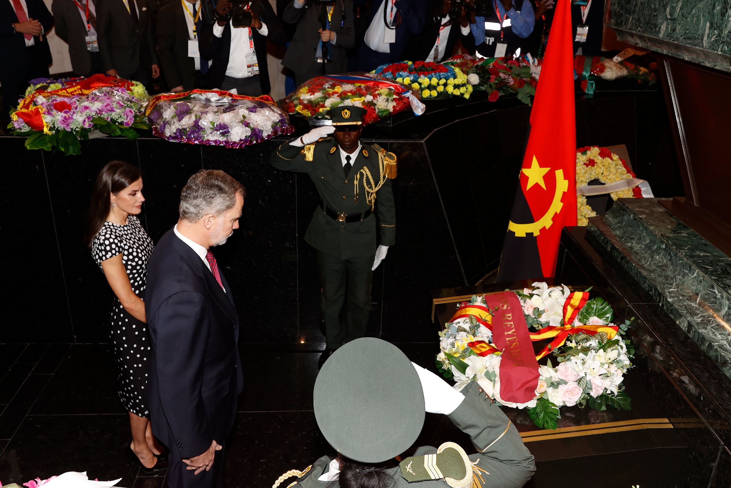 Está situado en la capital, Luanda, y los restos del expresidente descansan en el interior de este monumento. Junto a dos soldados depositaron una corona y guardaron un minuto de silencio. Posteriormente, recorrieron el Memorial y firmaron en el Libro de Honor.