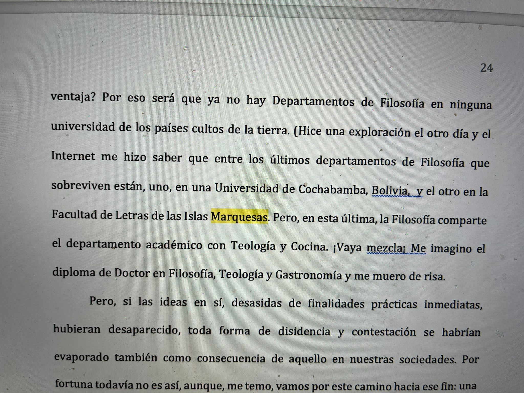 Asegura Isabel que "Mario añadió dos párrafos a su famoso cuento el pasado mes de enero. En ellos, hablaba de las islas marquesas -en referencia al marquesado de Griñón que heredó de su padre – y se reía de Tamara, una niña que solo ha sido cariñosa y amorosa con él". No es la única frase hiriente que escuece a Isabel. "La Filosofía comparte el departamento académico con Teología y Cocina. ¡Vaya mezcla! Me imagino el diploma de Doctor en Filosofía, Teología y Gastronomía y me muero de risa". Isabel responde tajante: "Meterla en todo esto me parece caer muy bajo. Hay un límite para todo y lo han traspasado", sentencia Preysler.