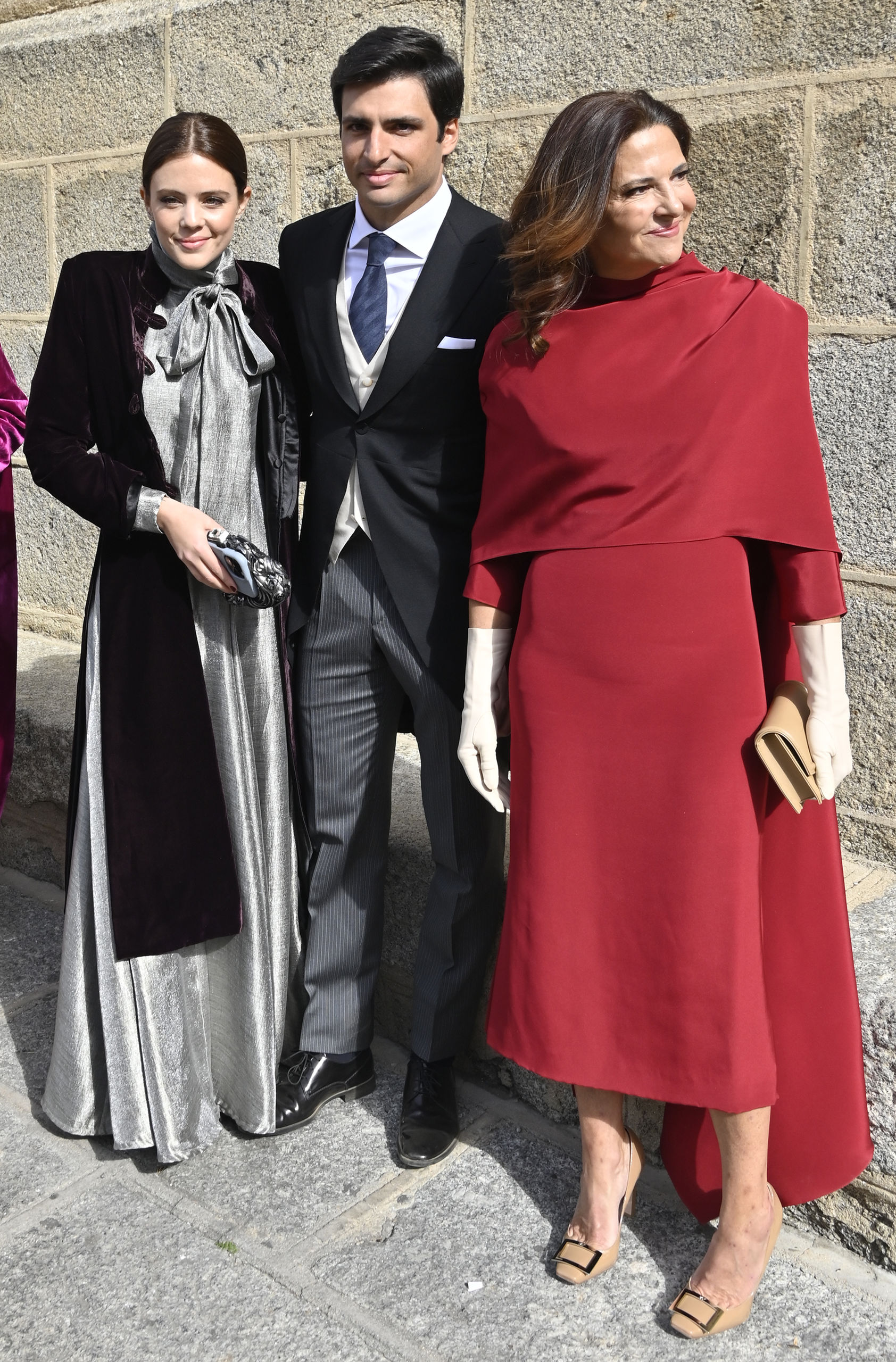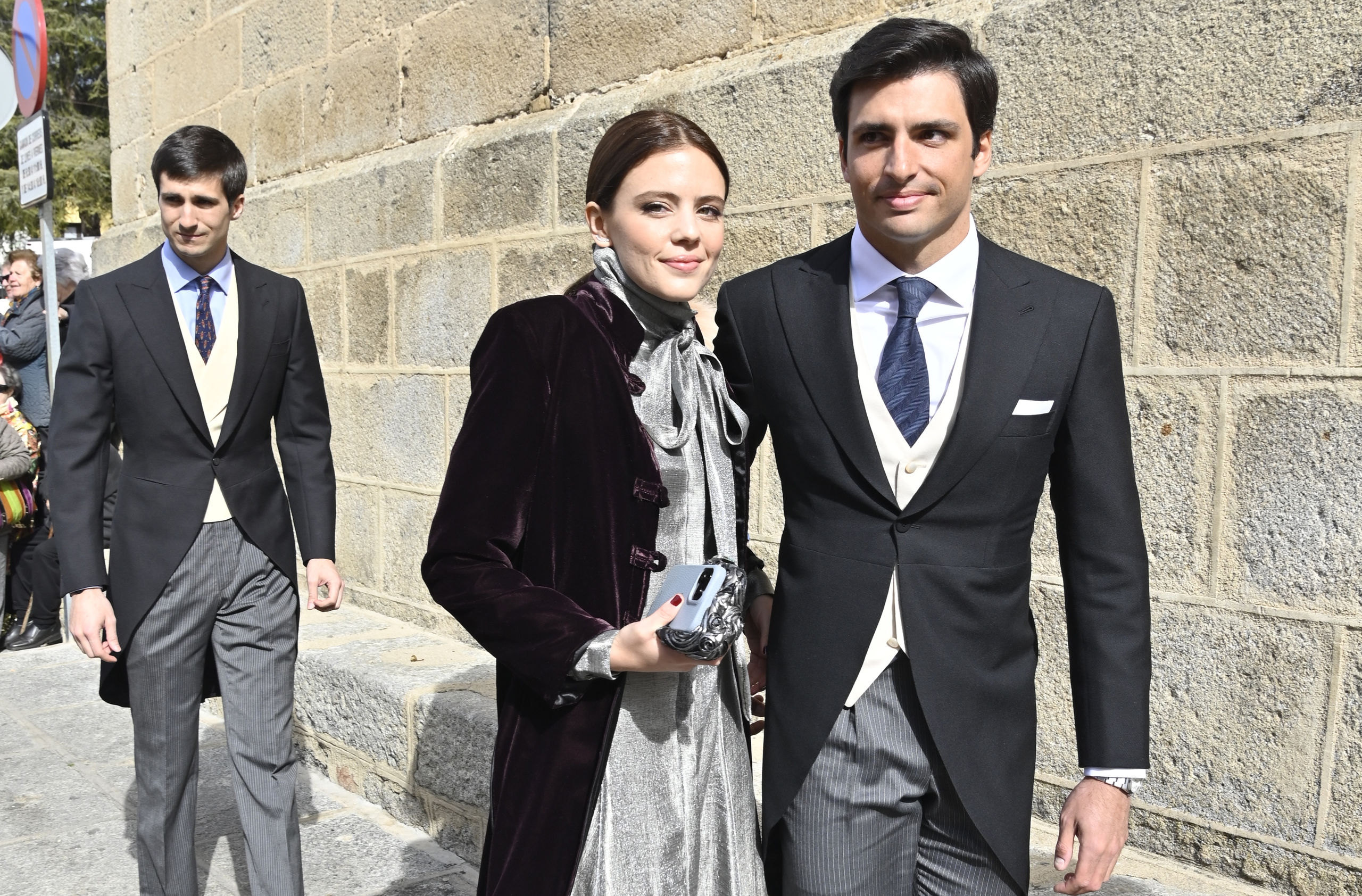 El hermano de la novia, Carlos Sainz Jr, lució un chaqué de color negro con un chaleco blanco y una cortaba con tonos azules. Llegó acompañado de su novia Isabel Hernández, una de las más originales con un vestido en color gris hasta los pies.