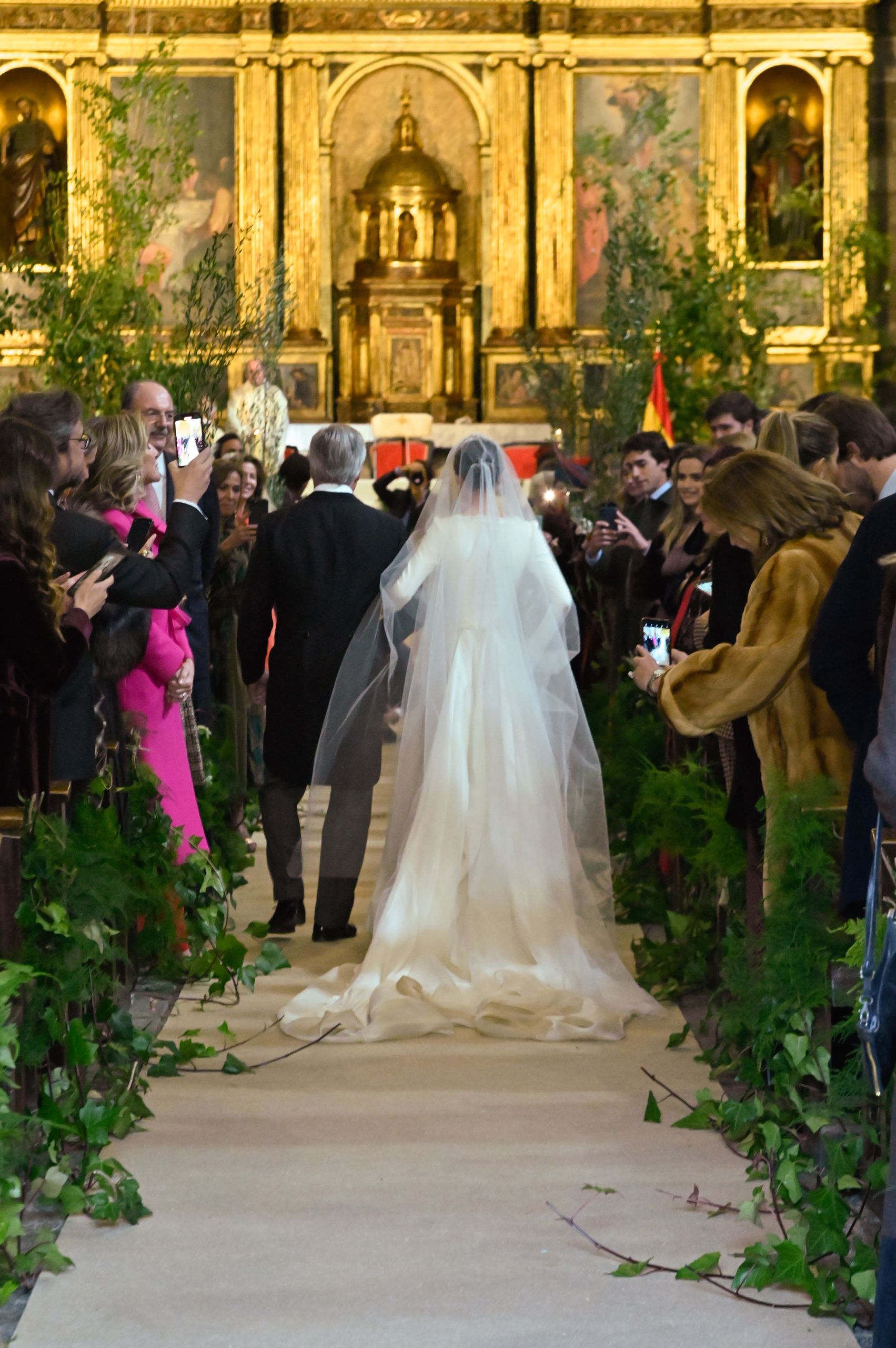 La novia llegaba del brazo de su padre que ejercía de orgulloso padrino que no podía ocultar la emoción de llevar a su hija pequeña al altar.