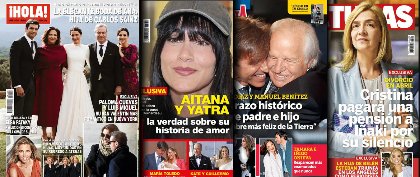 Hola lleva a portada, aunque en recuadro inferior, la exclusiva de la semana: el viaje que Paloma Cuevas y Luis Miguel han realizado, en plan novios, a Nueva York. Y que encima ha coincidido con el Día de San Valentín. El primero que la pareja, que sepamos, celebra junta.