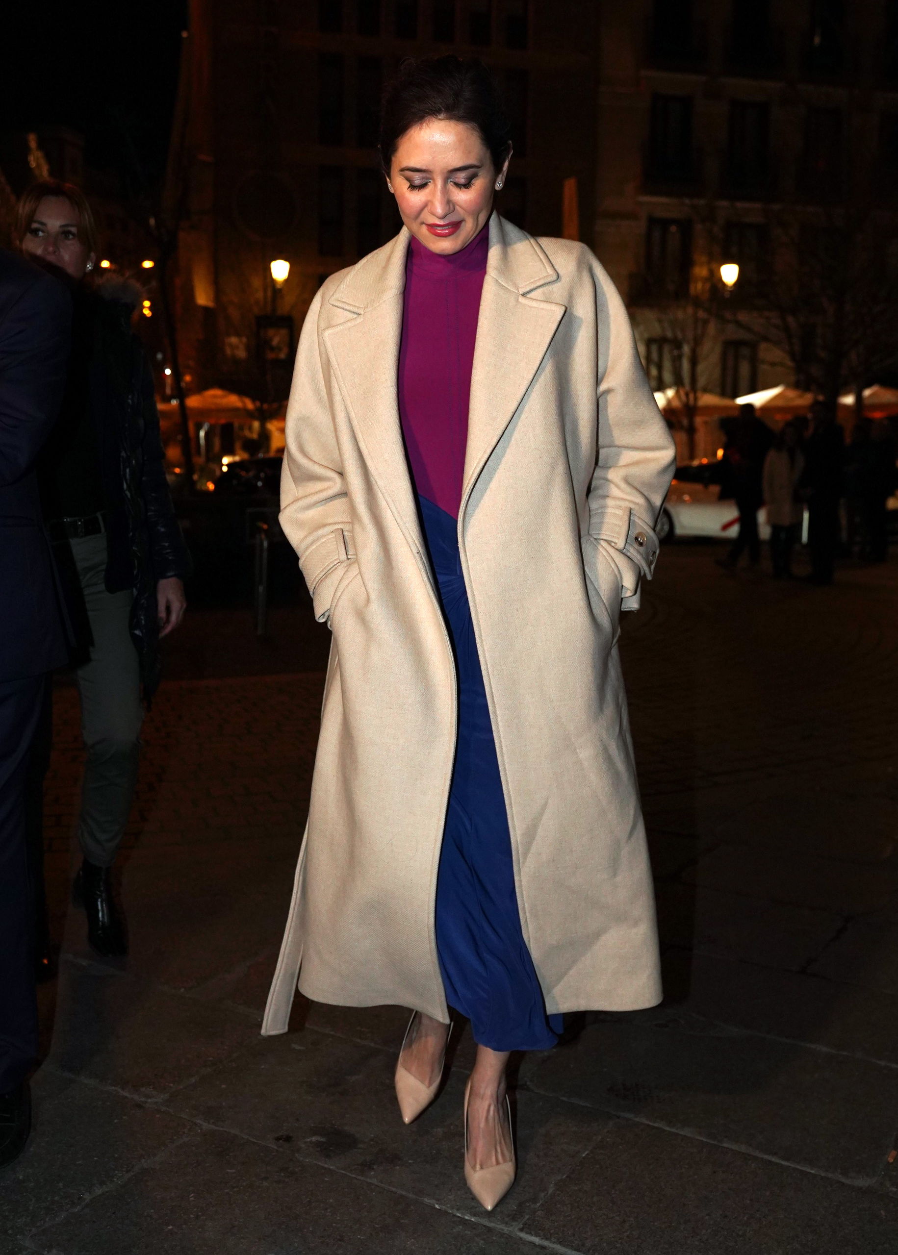 La presidenta de la Comunidad de Madrid acudió a la fiesta con un vestido de Victoria Colección que estrenó en la gala de presentación de los carteles de San Isidro 2023.
