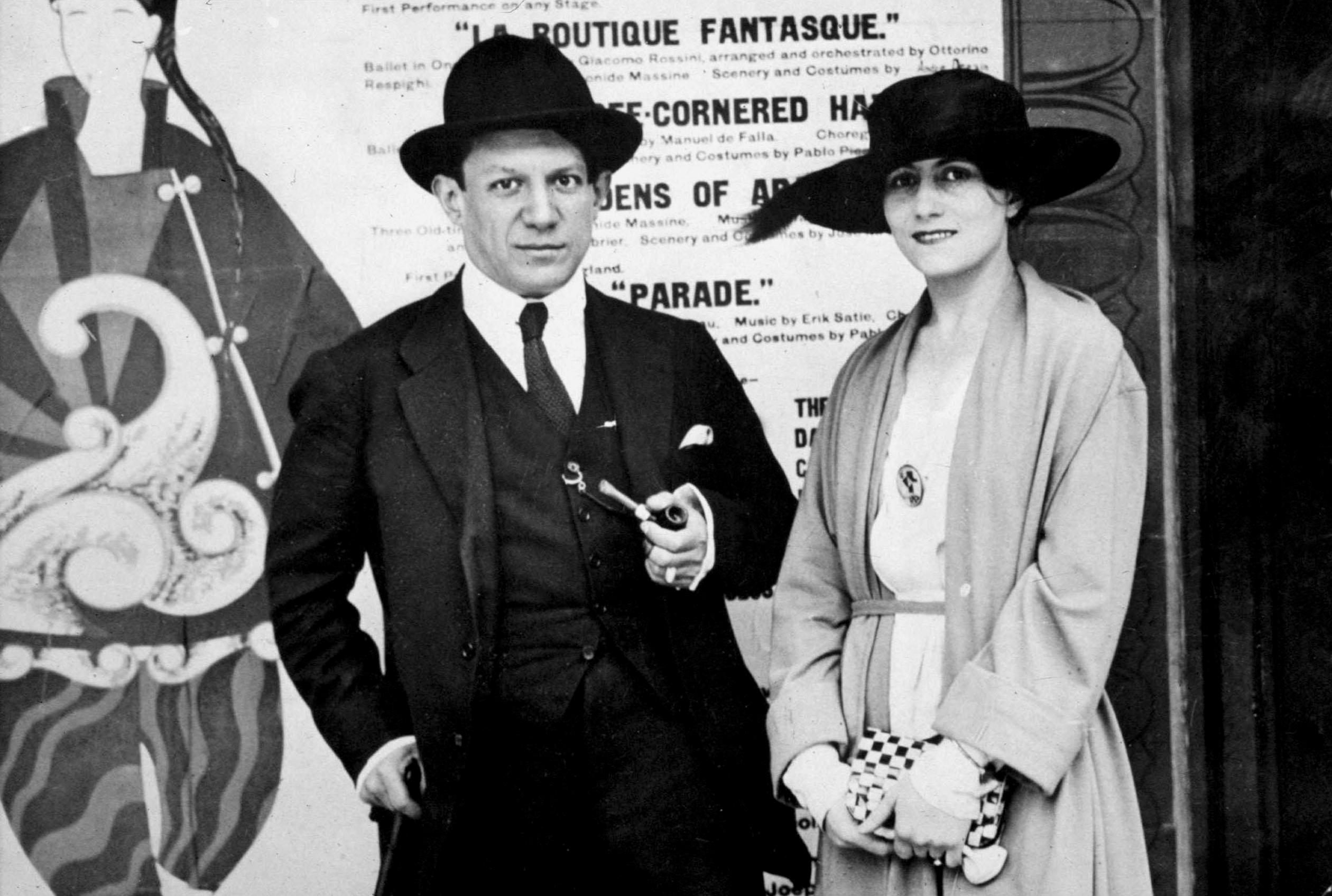 Y así, en 1916 compartía dos mujeres, no a la vez en la cama, desde luego. Una era Gabrielle Lespinasse, corista en un cabaré de Montparnasse, y la otra Elvira Paladini. Ambas posaron para otros cuadros picassianos. Un año más tarde, febrero de 1917, estando en Roma junto a Jean Cocteau para preparar con Diagilev, director de los Ballets Rusos, unos decorados, se enamoró de una de las bailarinas de la compañía, no precisamente brillante, Olga Koklova, que era hija de un general zarista y contaba diez años menos que él. Ucraniana, pretendía descender de familia aristocrática. A Picasso le impresionó que todavía fuera virgen. Él la hizo mujer enseguida. Tenía tales ínfulas ella que le cambió la vida y de ser un bohemio pasó a residir en un apartamento sito en la rue de Boëtie, bien acondicionado, de cuya decoración se ocupó la bailarina. A partir de entonces llevaron una existencia desacostumbrada en él, frecuentando acontecimientos del "tout París", él vistiendo incluso trajes de etiqueta y ella gastando dinero a manos llenas en las casas de modas, pues ya Pablo empezaba a ser un cotizado pintor. A ella la inmortalizó en distintos cuadros, uno de ellos ataviada Olga con peineta y mantilla. Digamos que su nueva conquista se avino a aprender pronto el español. Le insistió en casarse por la Iglesia, lo que a Picasso dejó en actitud dubitativa, siendo ateo. Pero accedería porque estaba completamente abducido por aquella mujer, si así puede expresarse la pasión que sentía a su lado.