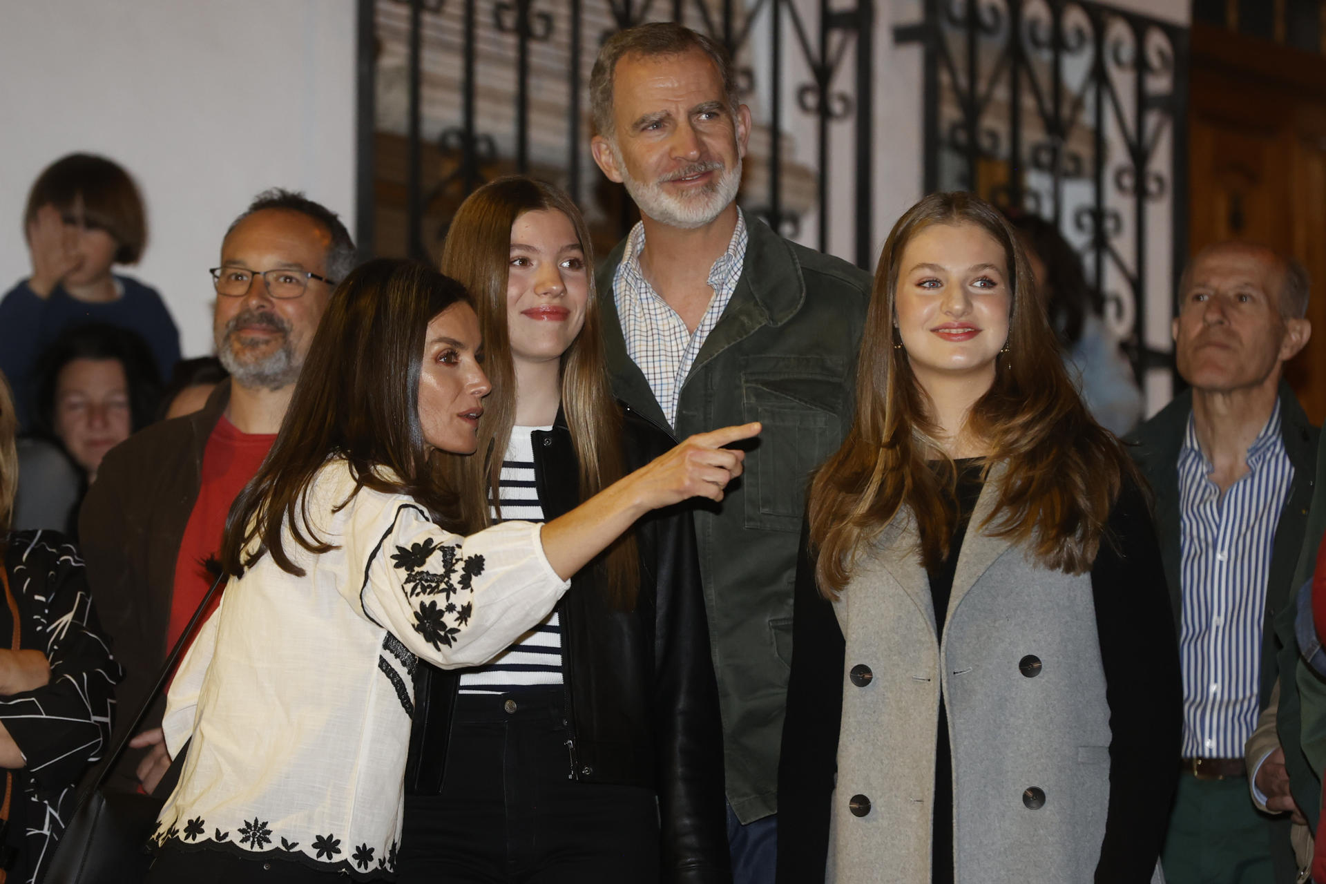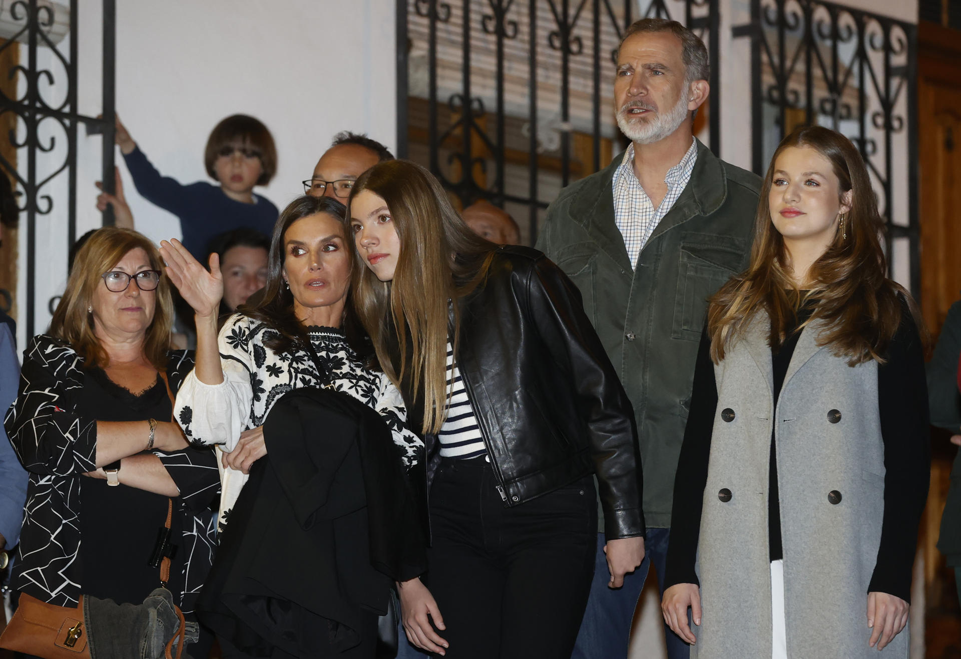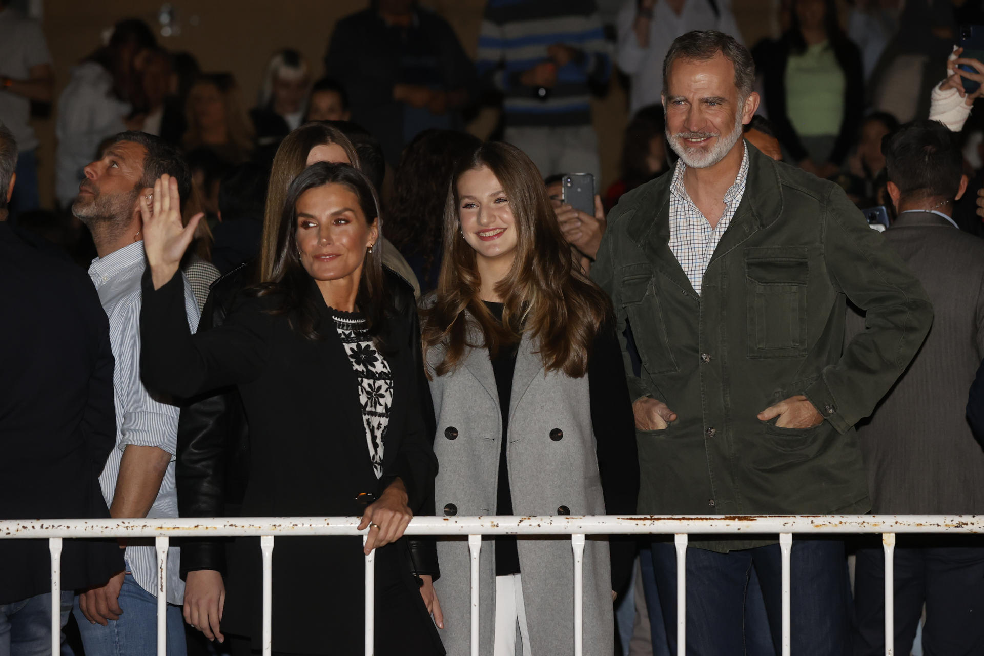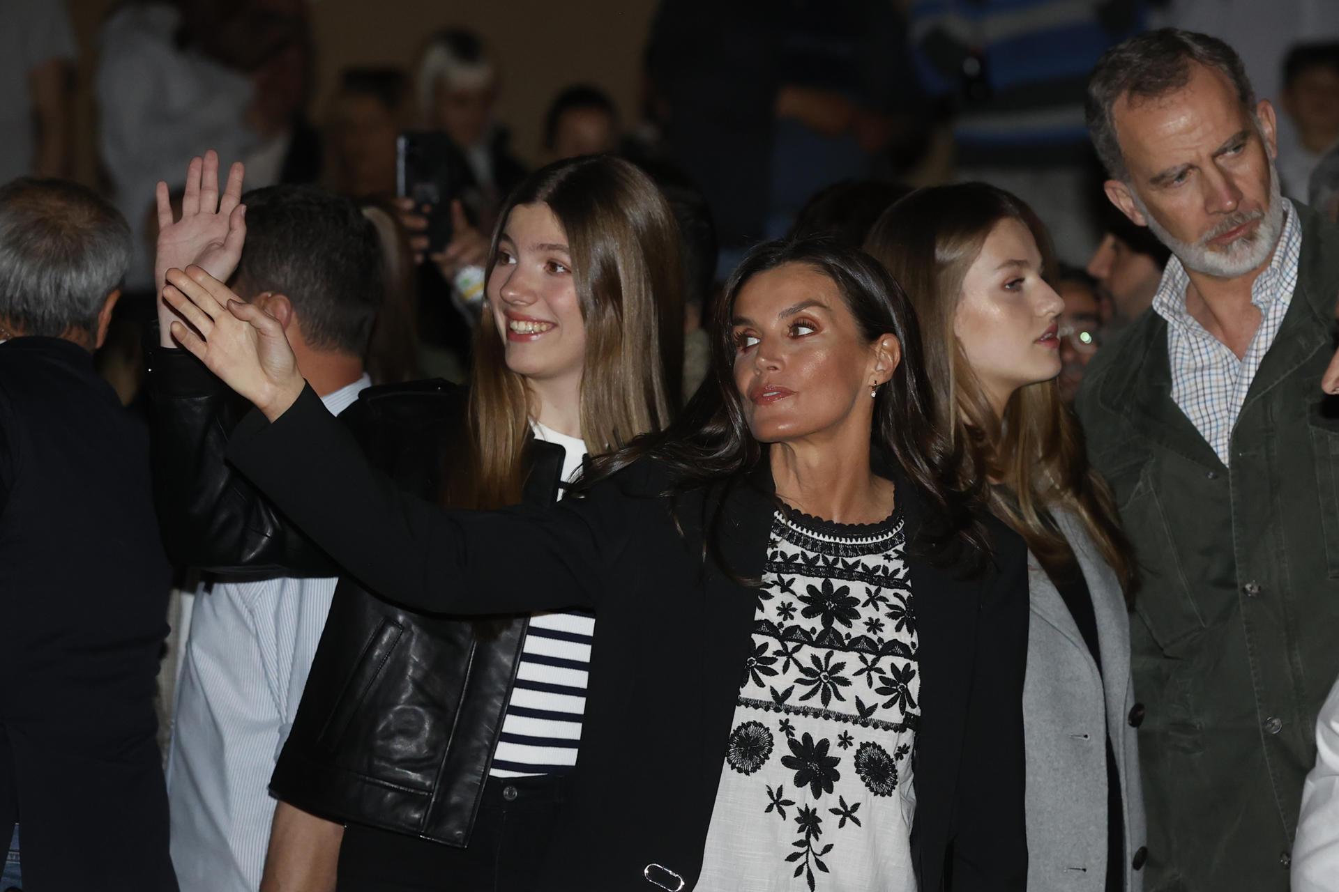 Letizia y Sofía saludando