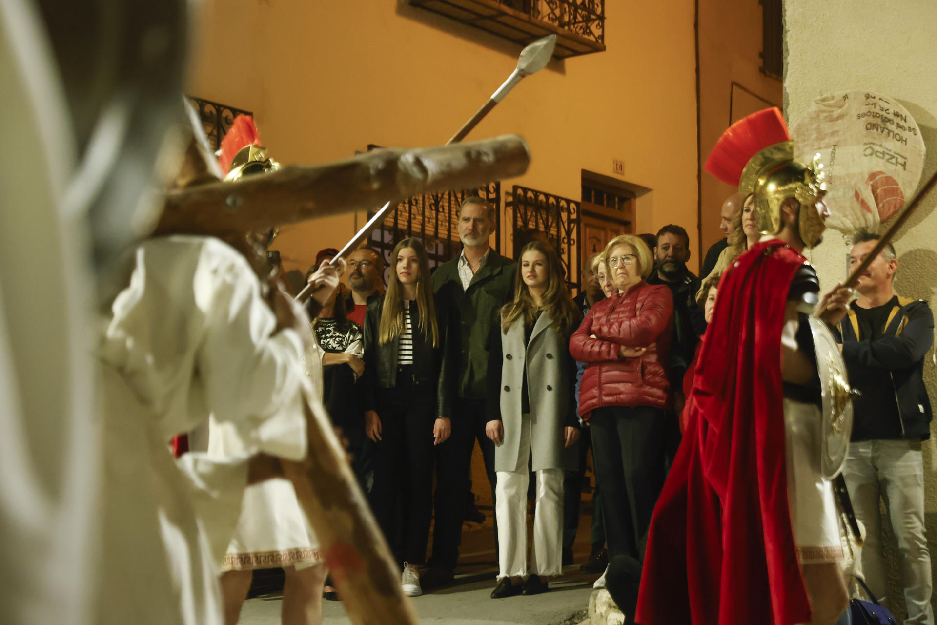 Los Reyes, la princesa Leonor y la infanta Sofía visitan por sorpresa Chinchón para asistir a la representación de la Pasión de Cristo, en su sexagésimo aniversario.