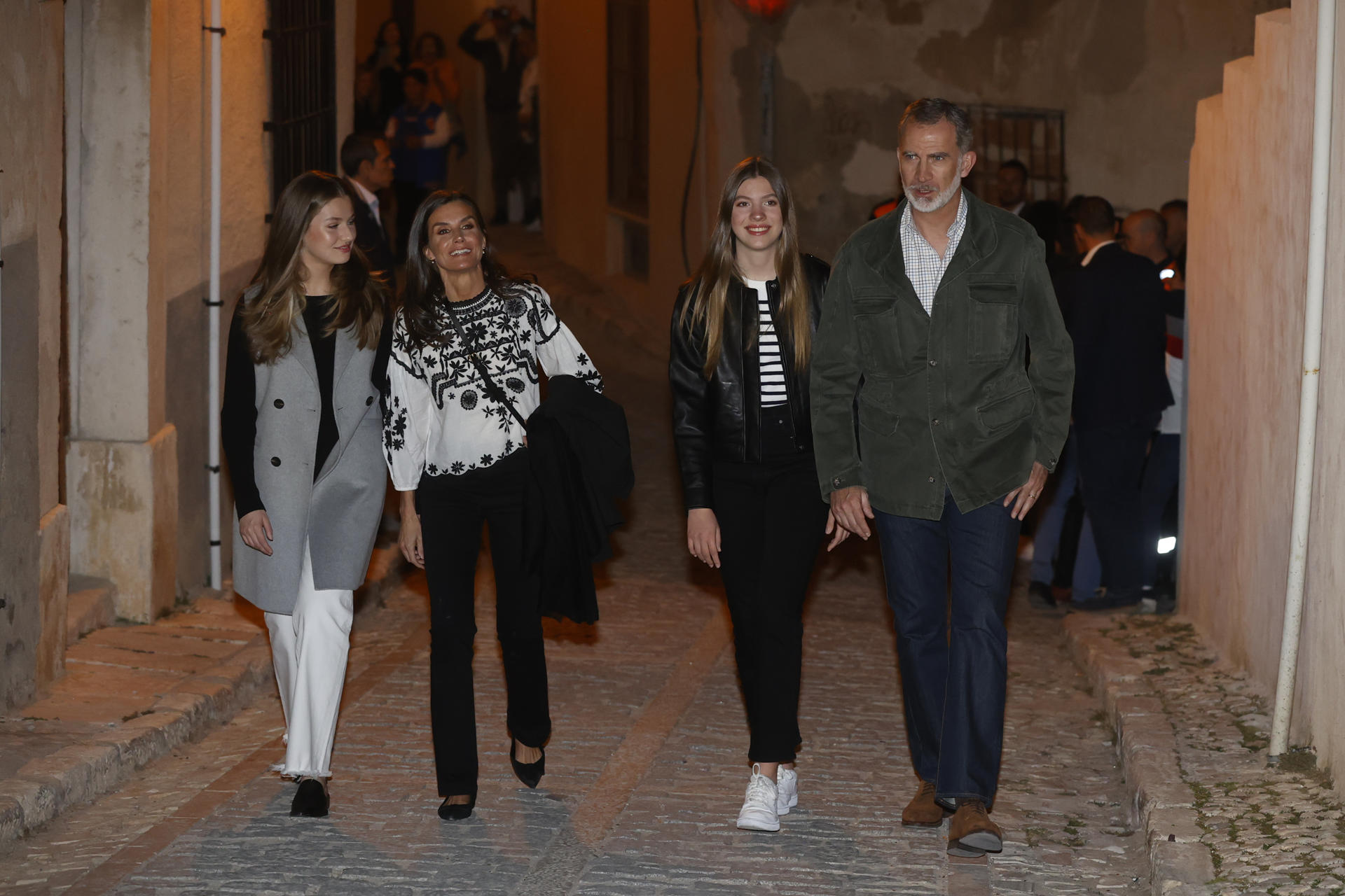 Los Reyes y sus hijas por las calles de Chinchón