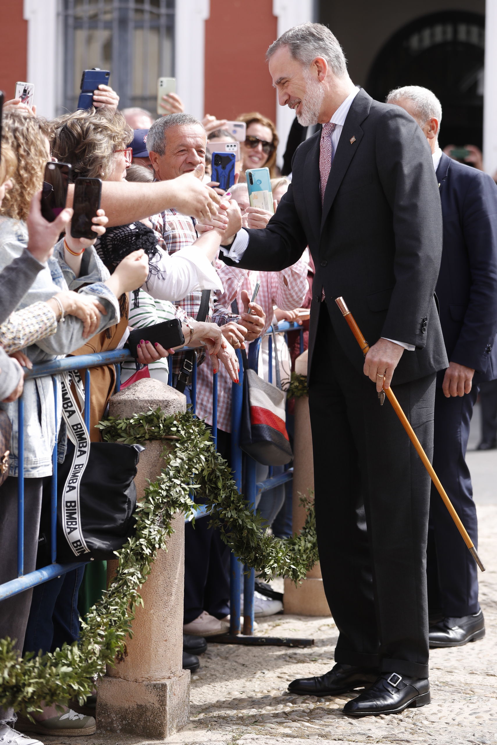 Felipe VI saludó al nutrido grupo de ciudadanos que se acercaron a los aledaños de la Plaza de Toros de Ronda para estrecharle la mano.