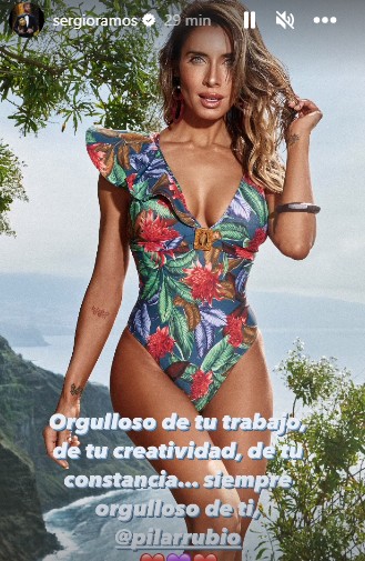 Consciente de que la ausencia de su mujer desataría más especulaciones, Ramos decidió publicar el jueves por la tarde en Instagram varios stories apoyando el trabajo de Pilar Rubio. "Espectacular colección. Orgulloso de tu trabajo, de tu creatividad, de tu constancia... Siempre orgulloso de ti", escribió junto a una imagen de la modelo luciendo uno de sus nuevos bañadores.