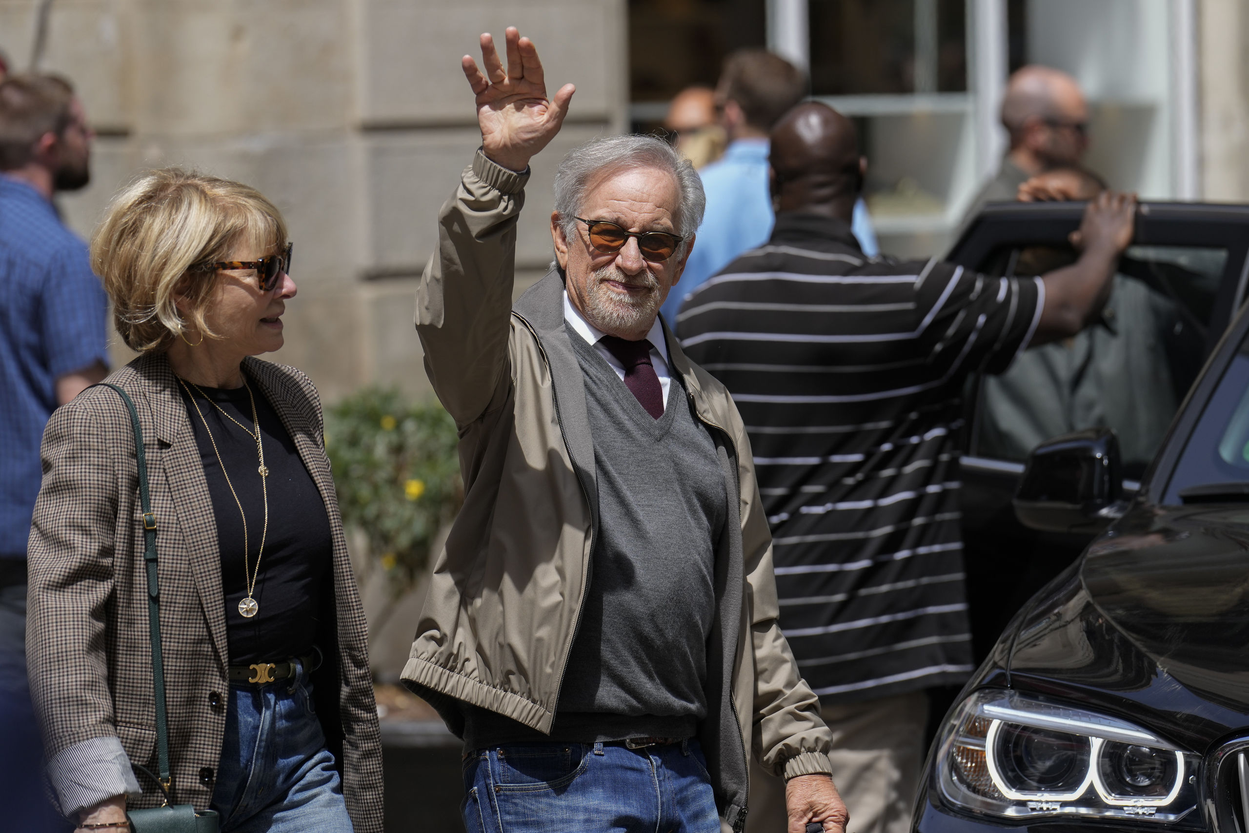 Por su parte, el expresidente norteamericano, bajo un sol primaveral, con camisa azul, pantalón beige y zapatos deportivos, no ha dejado de sonreír y saludar con la mano, mientras Spielberg lo hacía con su gorra, tanto al entrar como al salir del museo. Además, Obama ha levantado el pulgar cuando los periodistas le han preguntado si estaba disfrutando de su visita a Barcelona.