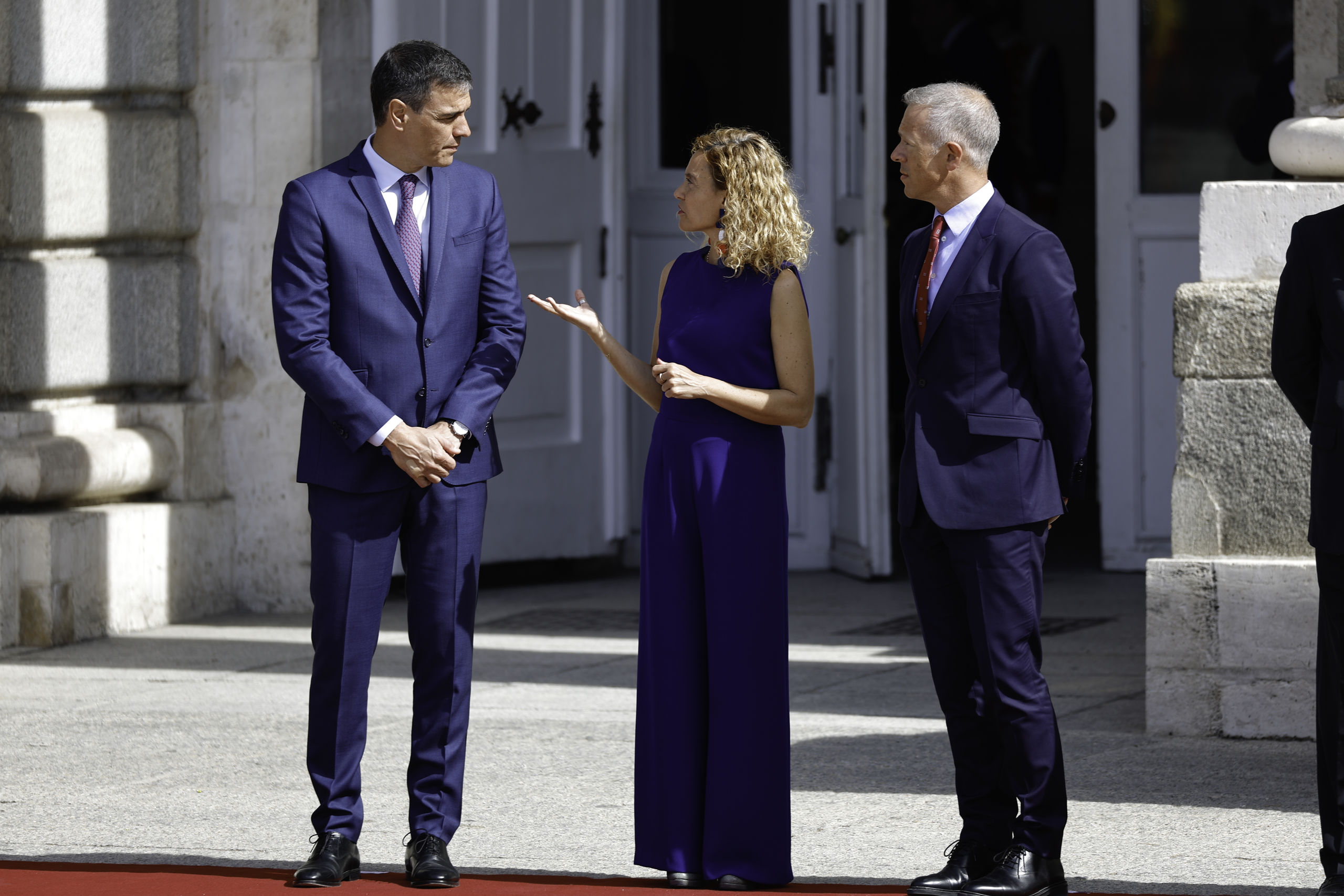 El Patio de la Armería ha sido el escenario donde don Felipe y doña Letizia han recibido a Petro y a su esposa, Verónica Alcocer, en una ceremonia a la que ha asistido el presidente del Gobierno, Pedro Sánchez, y representantes de las principales instituciones del Estado.