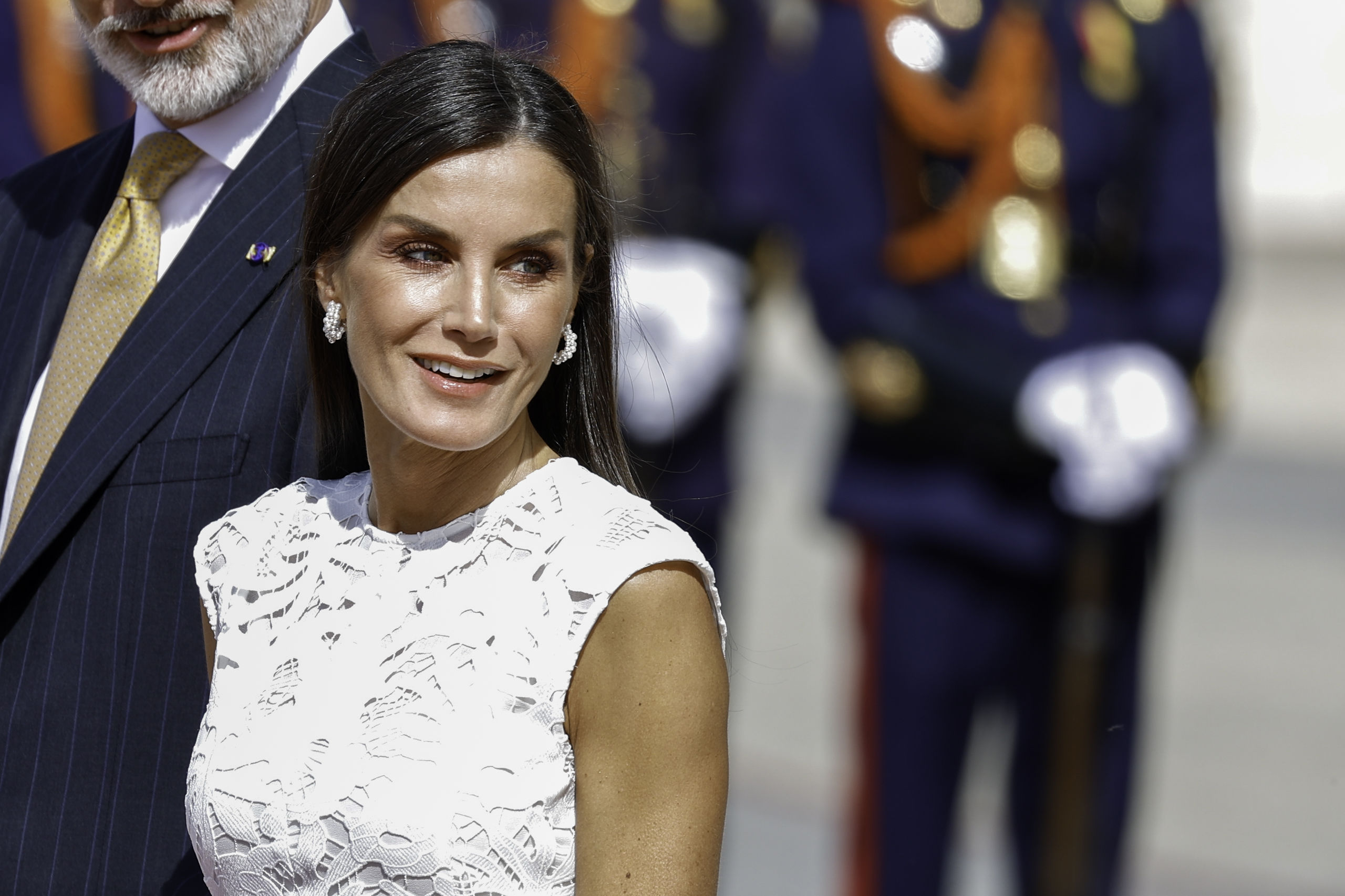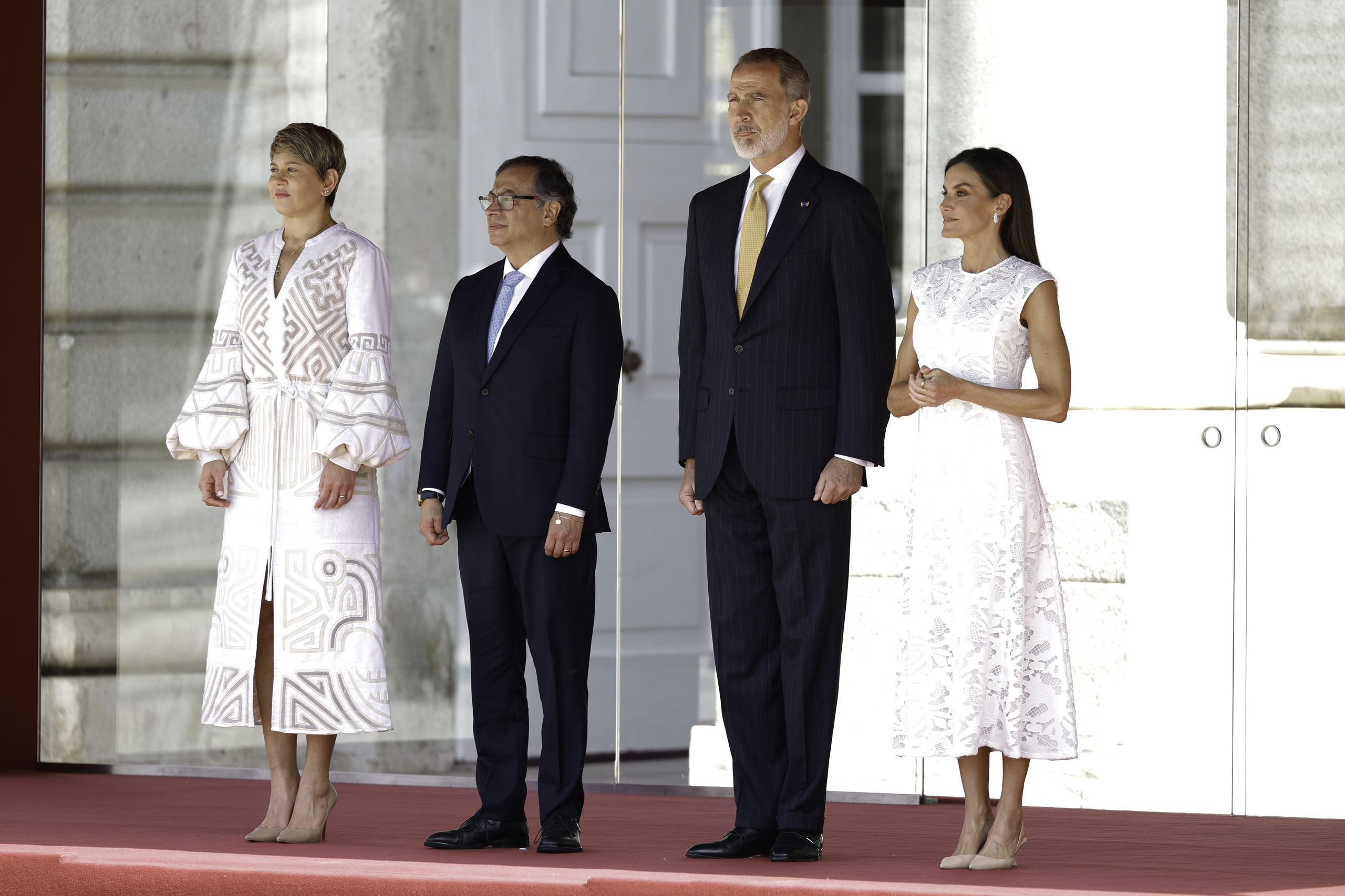 Los reyes han brindado este miércoles la bienvenida oficial al presidente de Colombia, Gustavo Petro, en el Palacio Real con motivo de su primera visita de Estado a España después de que asumiera el poder el pasado mes de agosto. Para esta ocasión la monarca español ha elegido un favorecedor y veraniego vestido blanco de marca española.