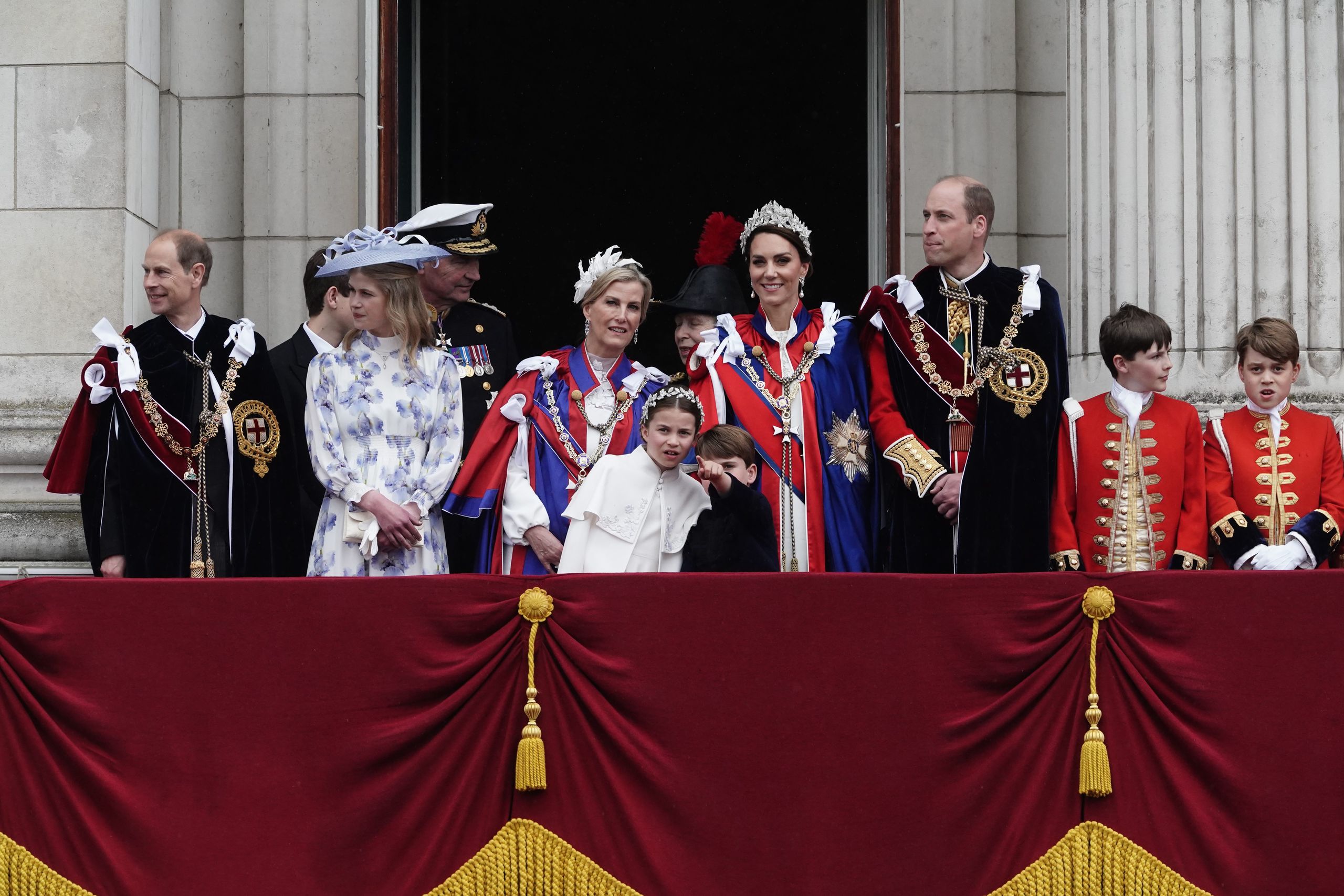 Guilllermo y Kate junto a sus hijos tras la finalización de la ceremonia de coronación.