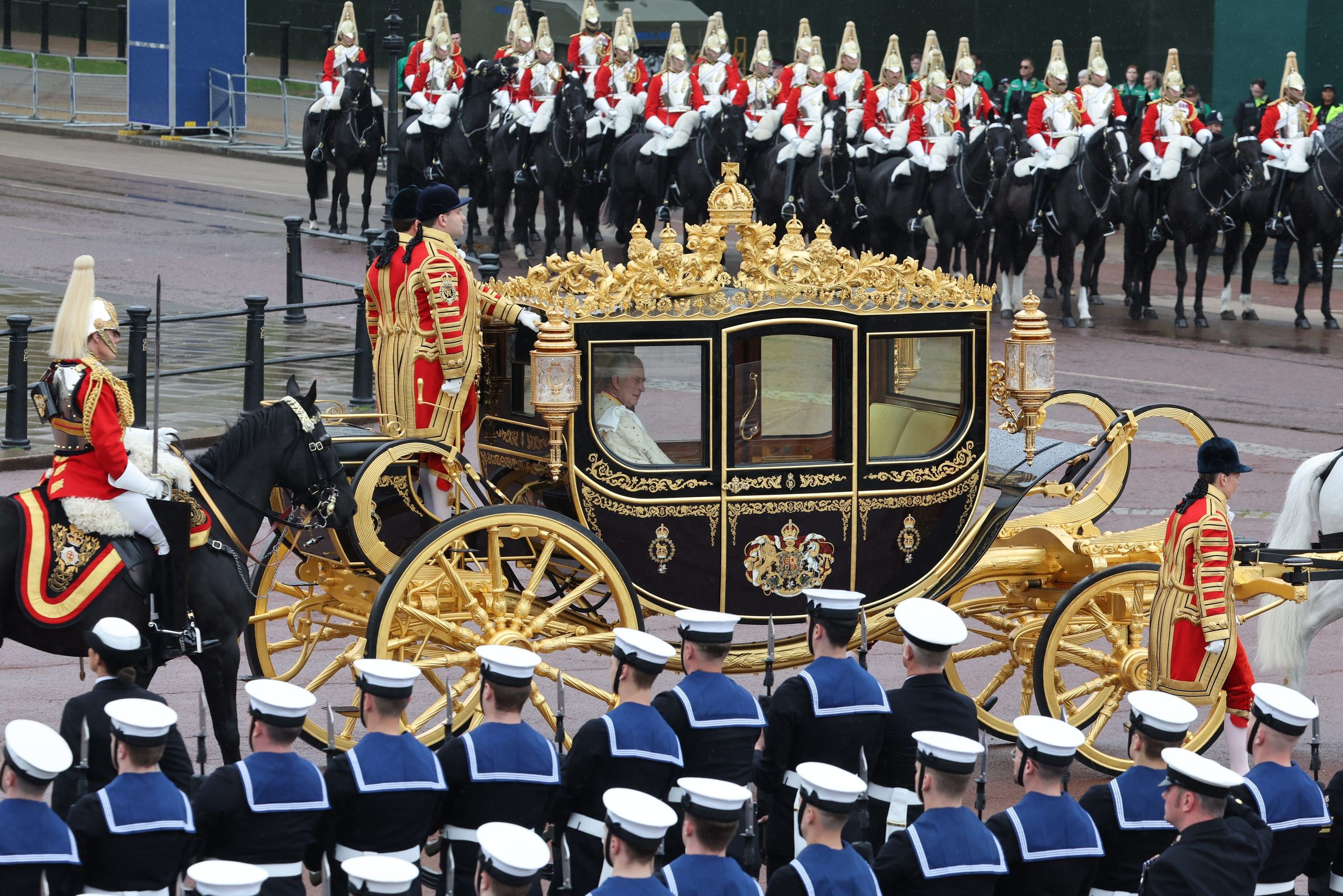 La carroza que transporta a los Reyes de Inglaterra recorrió las calles de Londres para llevar a Carlos III a la Abadía de Westminster para su coronación.