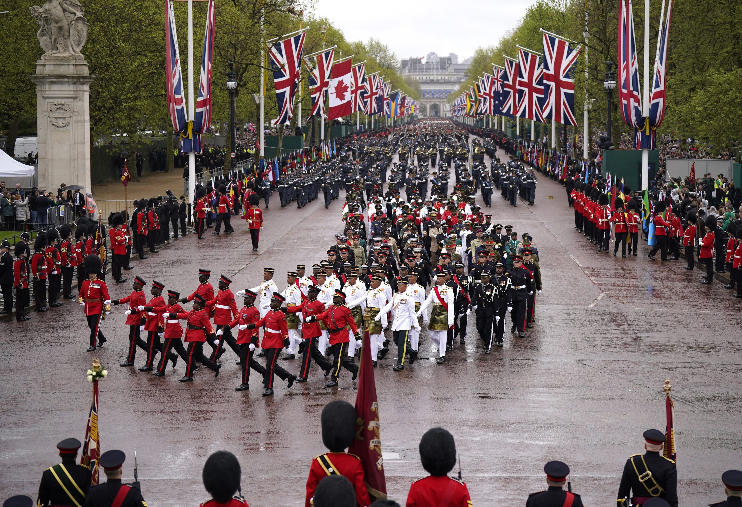 La procesión está dividida en ocho grupos, que incluyen a miembros de las Fuerzas Armadas de diversos países de la Commonwealth, así como de las distintas divisiones del Ejército británico.