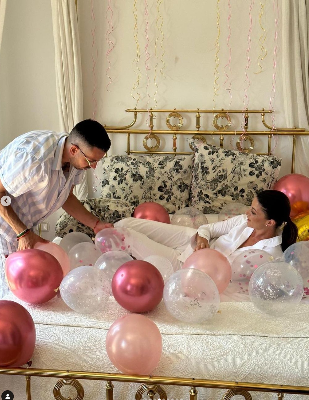 Una sesión de fotos muy especial en la que la exdiputada de Vox aparece rodeada de globos de colores, en pijama y con una botella de champán.