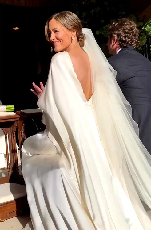Tanto las invitadas como la madre de la novia han mostrado con el vestido de la novia, firmado por Cortana, tal y como desvela Vanitatis. Cifuentes mostró en Instagram a su hija cuando se encontraba sentada junto a su marido en la capilla, muy sonriente y feliz. En las imágenes vemos con más detalle el vestido, combinado con un ligero chal de seda para cubrir los brazos y la espalda durante la ceremonia religiosa.
