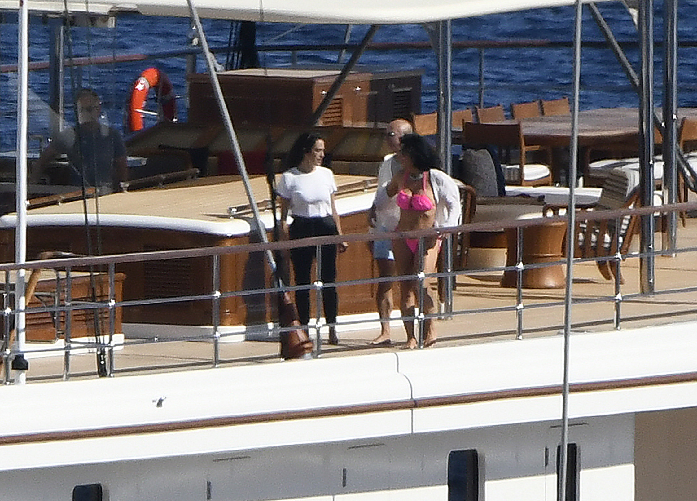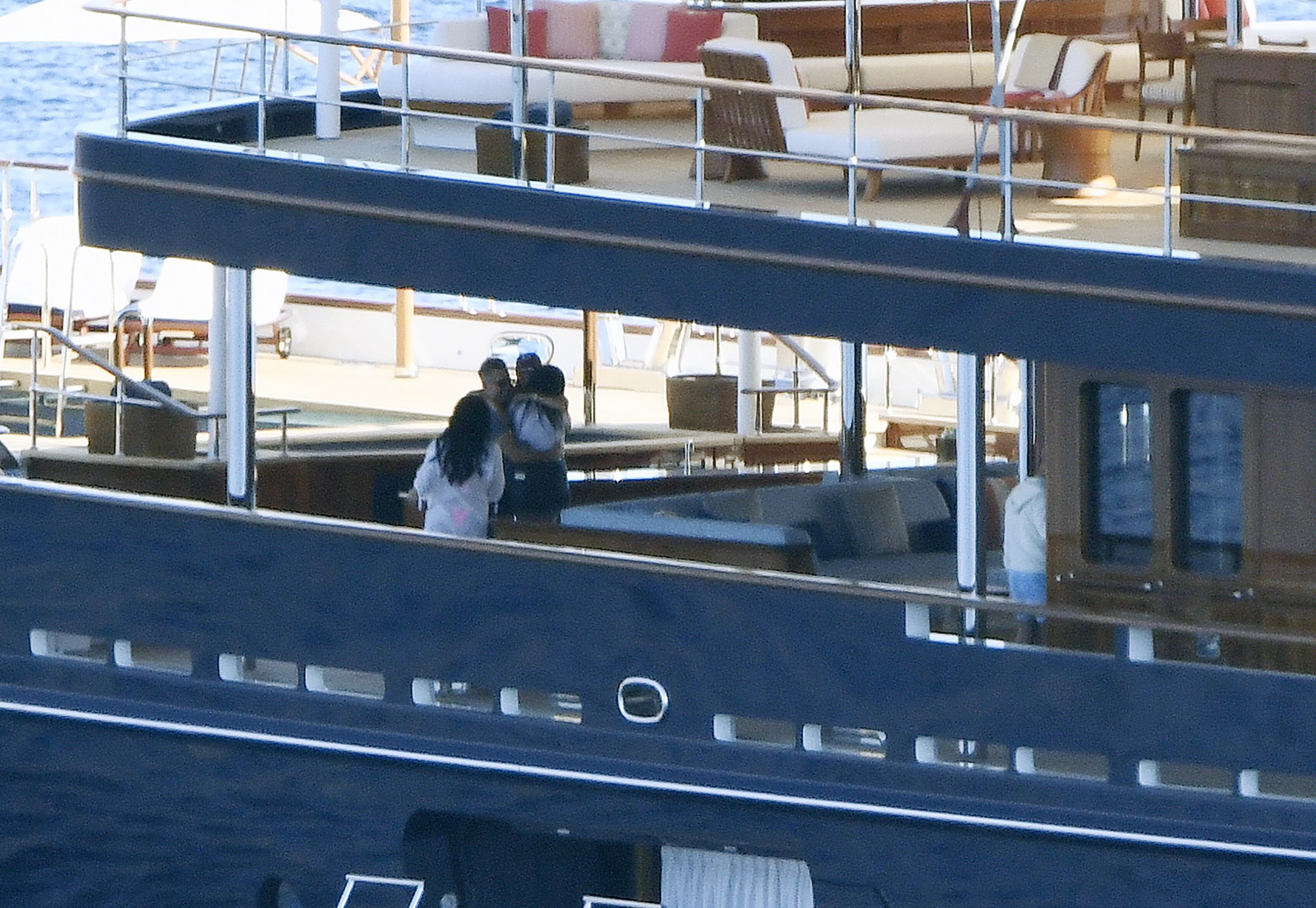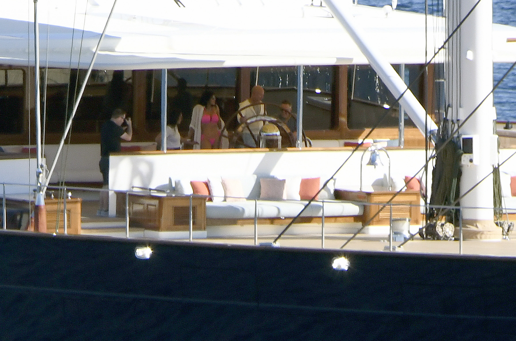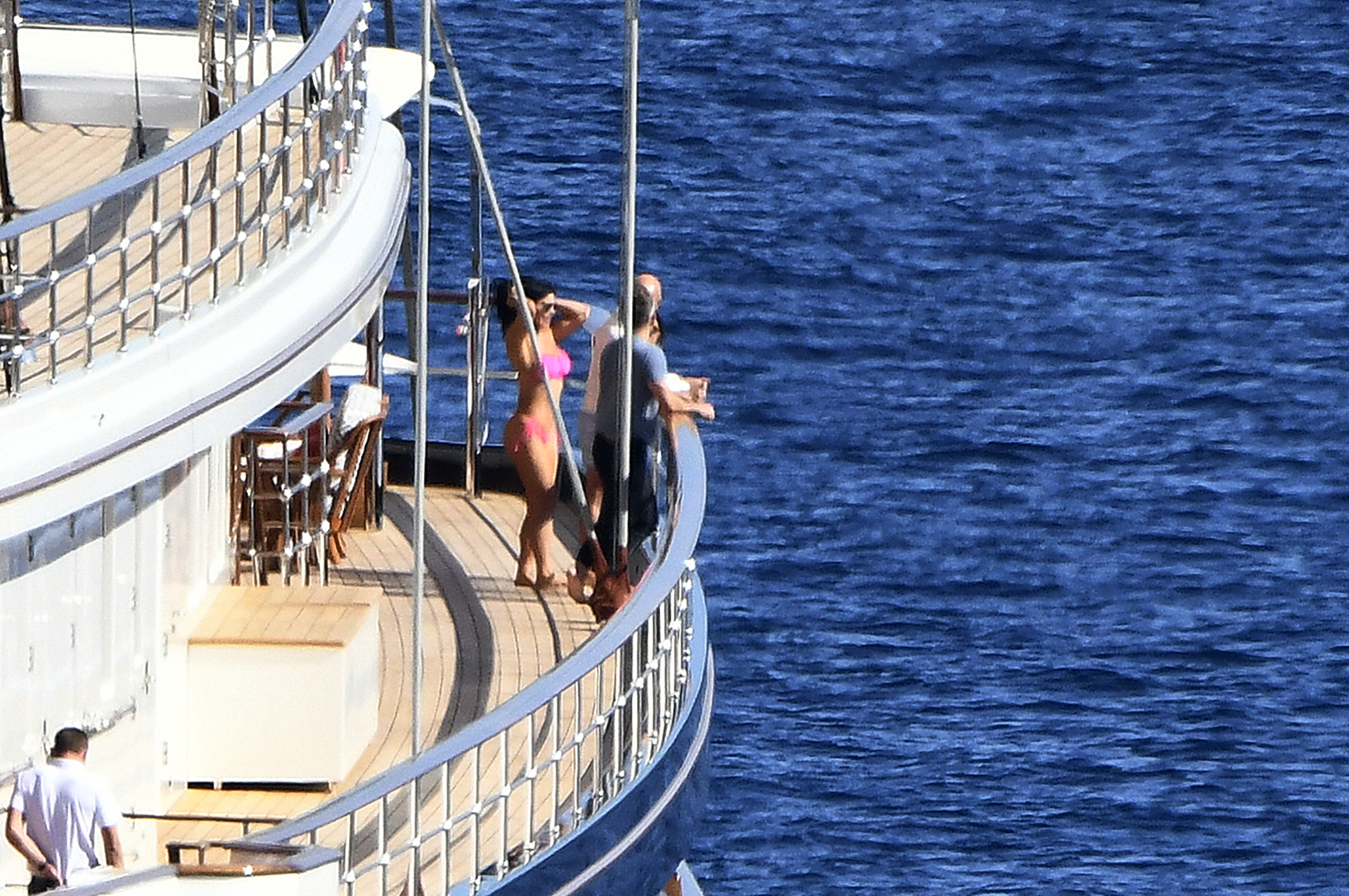 El barco fondea las aguas de las Islas Baleares y la pareja ha bajado a tierra para disfrutar de una comida en Ibiza.