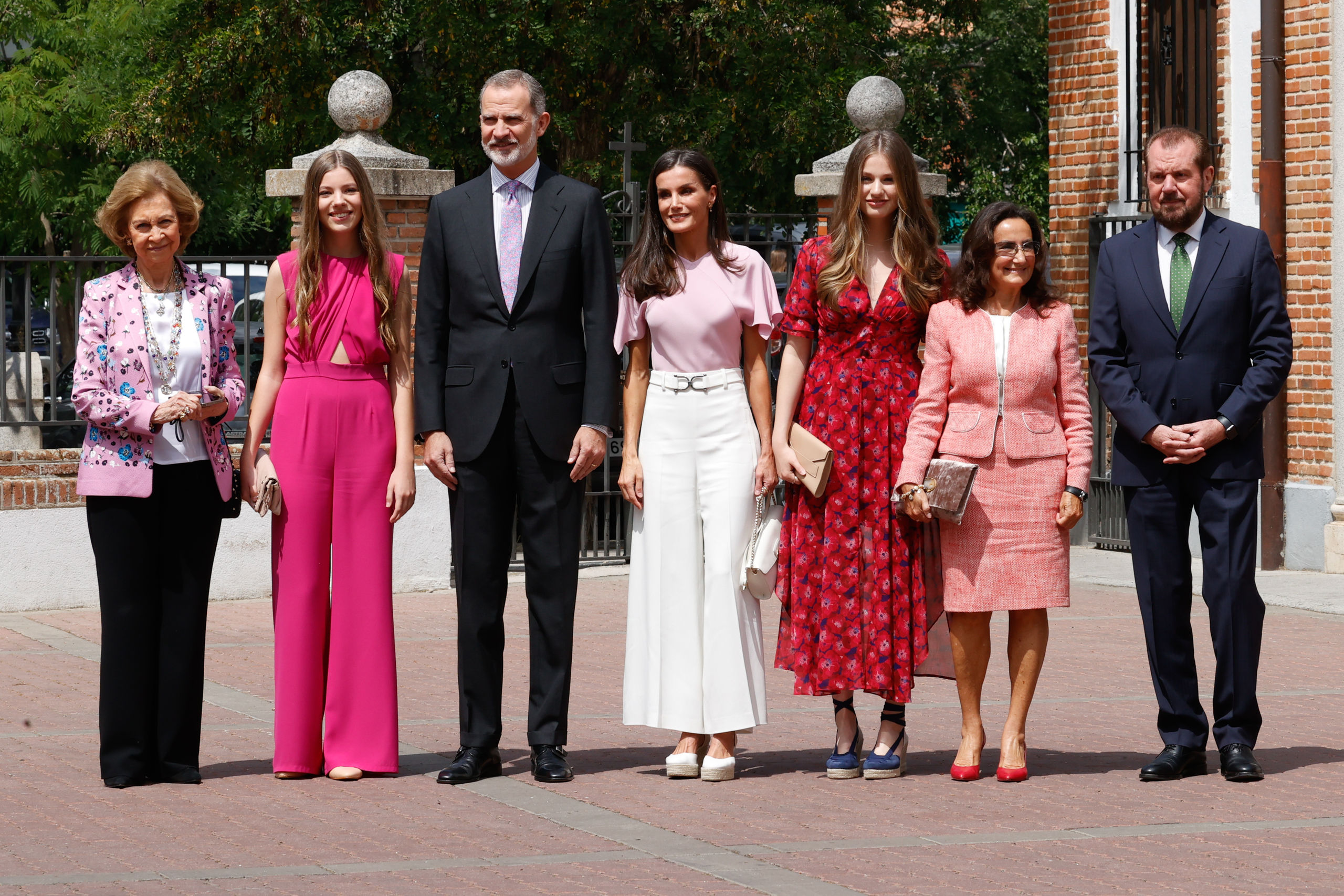 La infanta Sofía celebra su Confirmación con un atrevido mono fucsia y rodeada de su familia