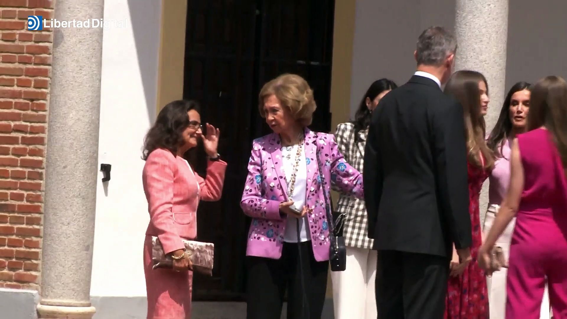 Imágenes de la infanta Sofía, arropada por los Reyes, la princesa Leonor, Doña Sofía y sus abuelos maternos en su confirmación. La hija menor de los Reyes ha hecho la confirmación junto a sus compañeros del colegio Santa María de Los Rosales y ha sido recibida, junto al resto de la Familia Real, con aplausos, piropos y gritos de 'Viva España', 'Viva el rey', 'Viva la infanta' y 'Viva Leonor' por parte de los ciudadanos que se encontraban en la puerta de la parroquia de la Asunción de Nuestra Señora en Aravaca.