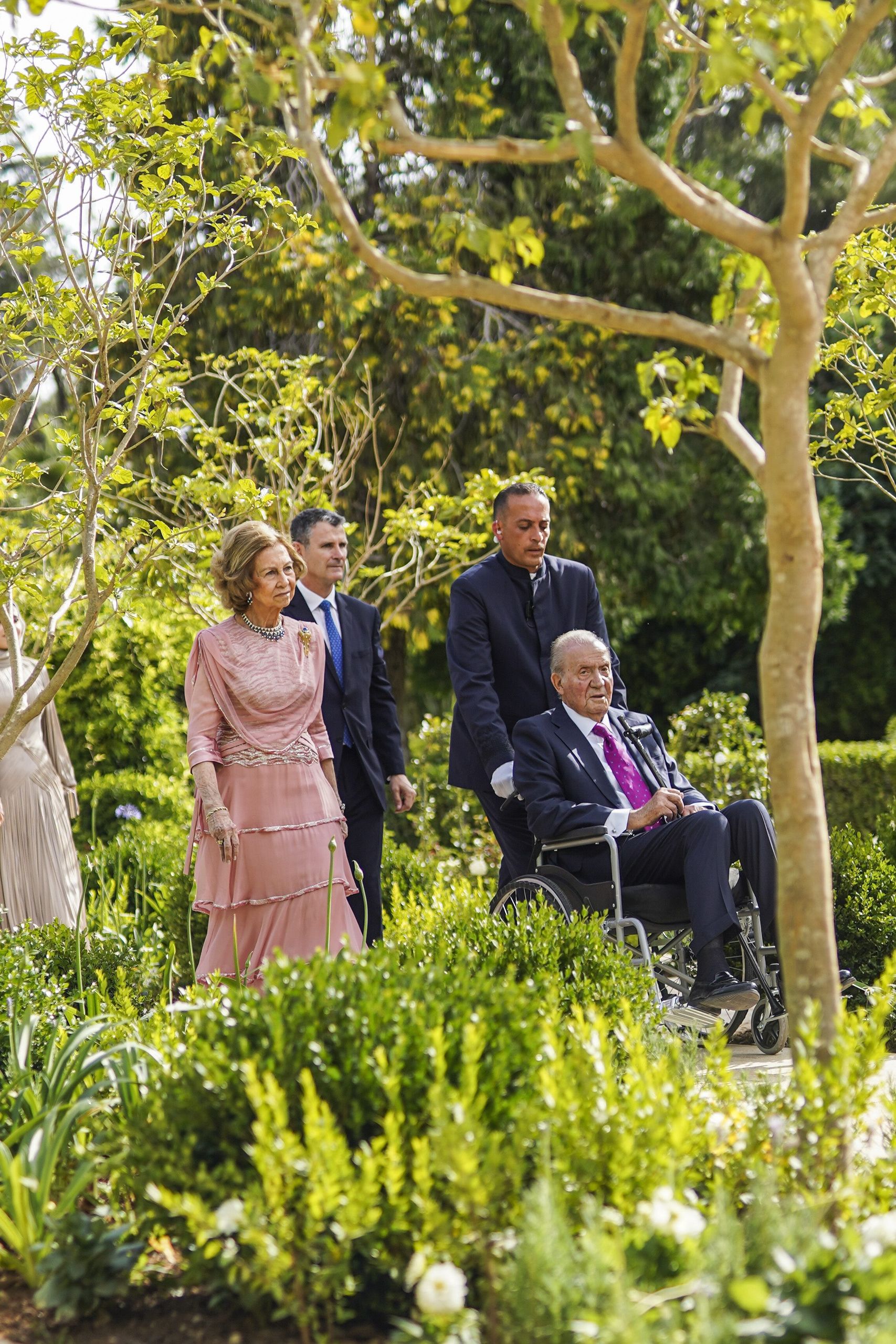 Los reyes eméritos de España, Don Juan Carlos y Doña Sofía, llegaron sobre las 16.45 hora jordana (13.45 GMT), juntos en el mismo vehículo, al palacio de Zahran, donde les recibieron los reyes Abdalá II y Rania de Jordania antes de pasar a la carpa instalada en los jardines del mirador elegido para la boda real.