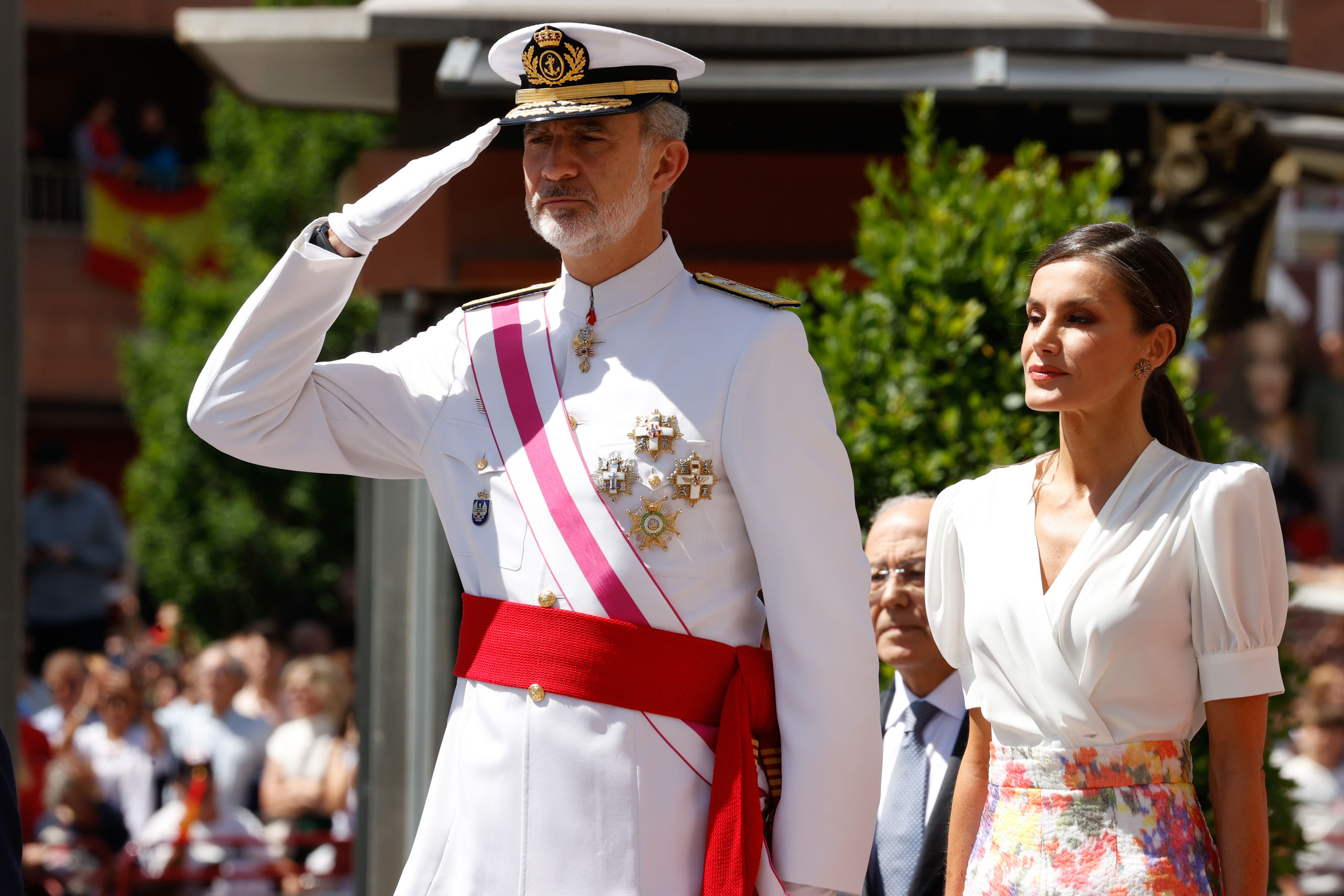 Felipe VI, por su parte, ha lucido el uniforme de verano de la Armada (suele alternar y cada año lleva el de uno de los tres Ejércitos).