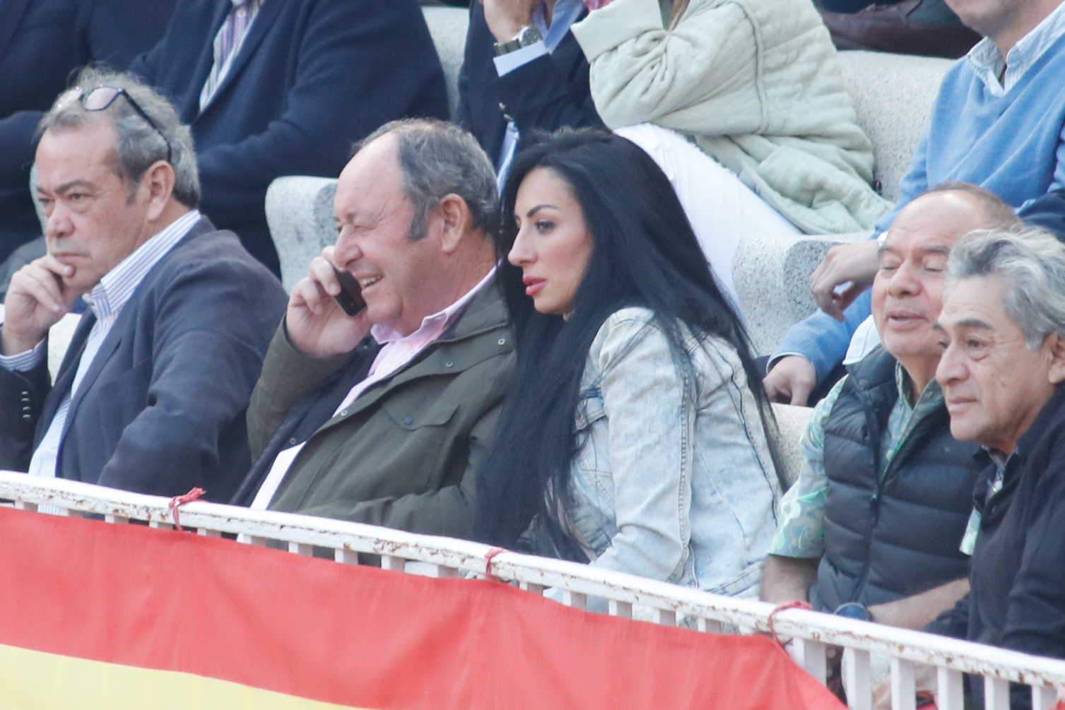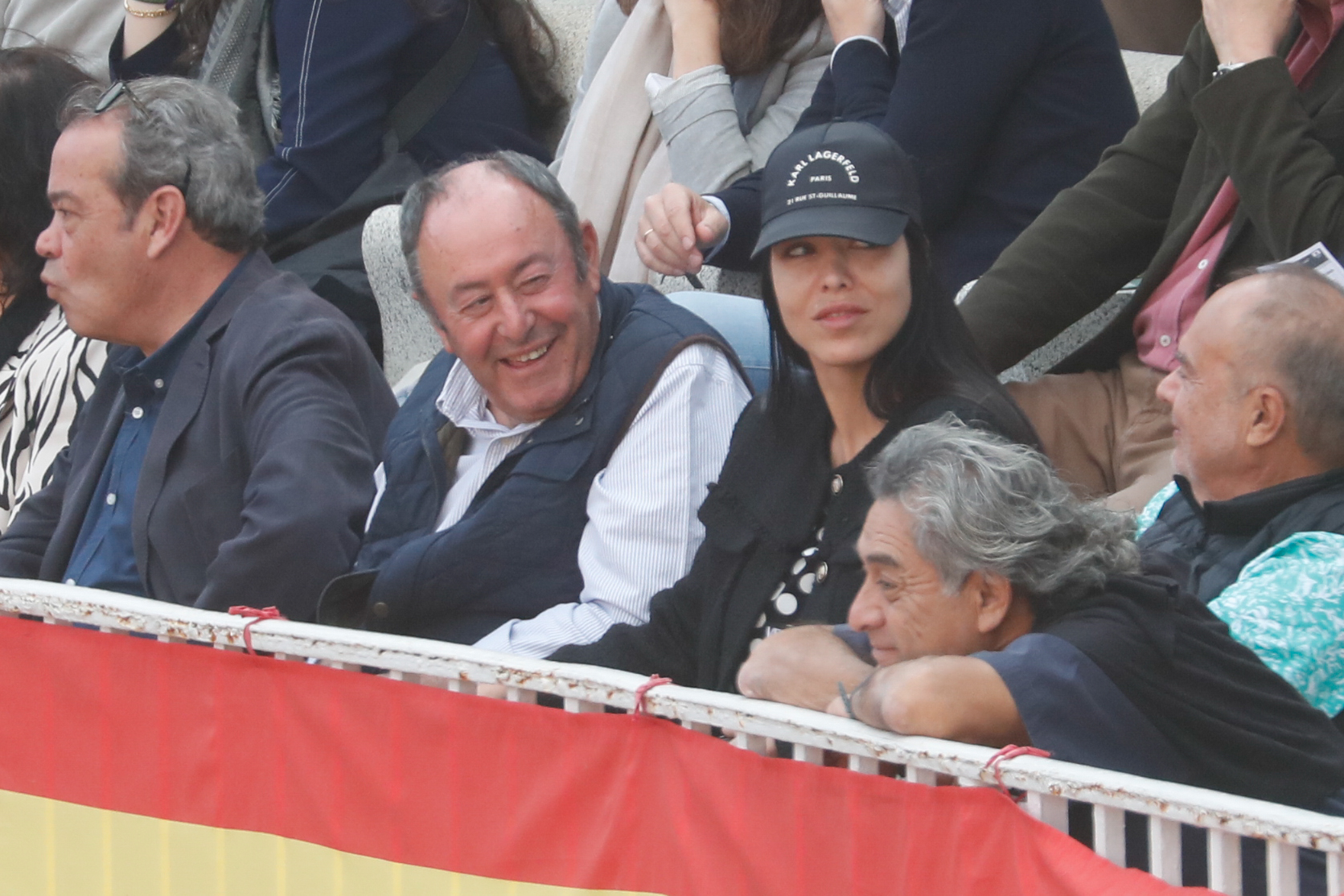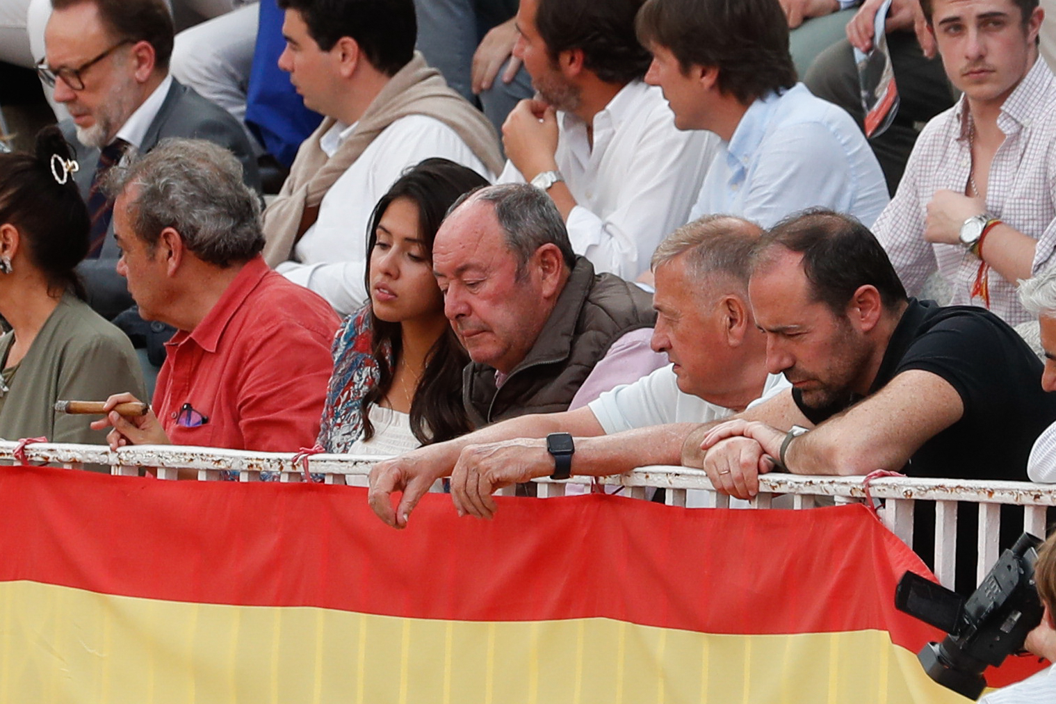 Luis Miguel charla por teléfono mientras su acompañante no quita la mirada del ruedo. Aquella fresca tarde madrileña Las Ventas colgó el cartel de ‘aforo completo’ en la octava de abono con Morante de la Puebla, El Juli y Tomás Rufo.