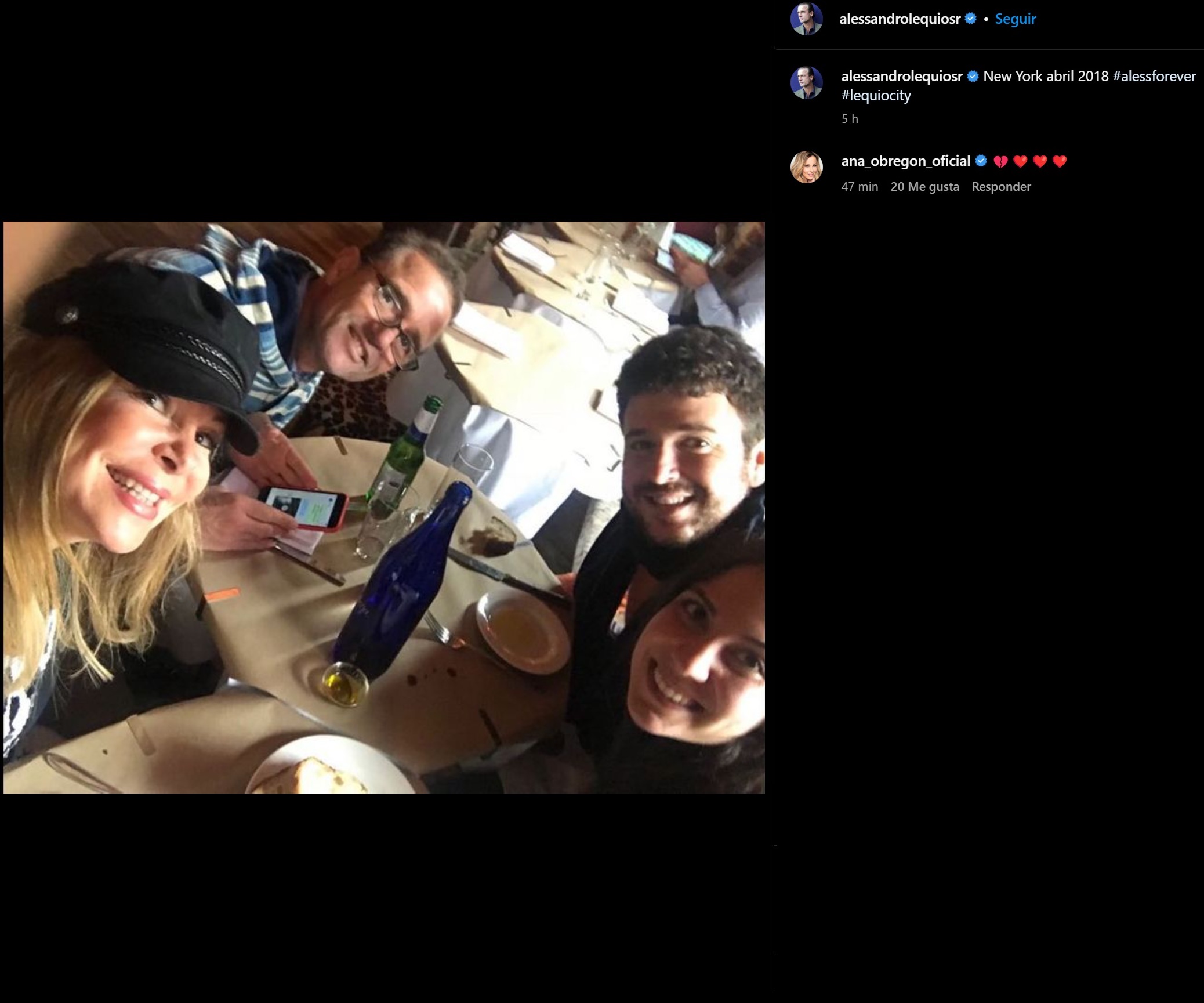 Este sábado, y después de que se haya puesto en duda el nivel de implicación de Alessandro Lequio en la enfermedad de su hijo, Ana Obregón ha decidido poner fin a esta guerra colgando una fotografía en su perfil de Instagram con un mensaje de cariño. Una publicación que ha llegado unas horas después de que el tertuliano compartiese con sus seguidores una imagen en la que aparecen todos juntos en Nueva York, durante la época en la que Aless se estaba sometiendo al tratamiento contra el cáncer.
