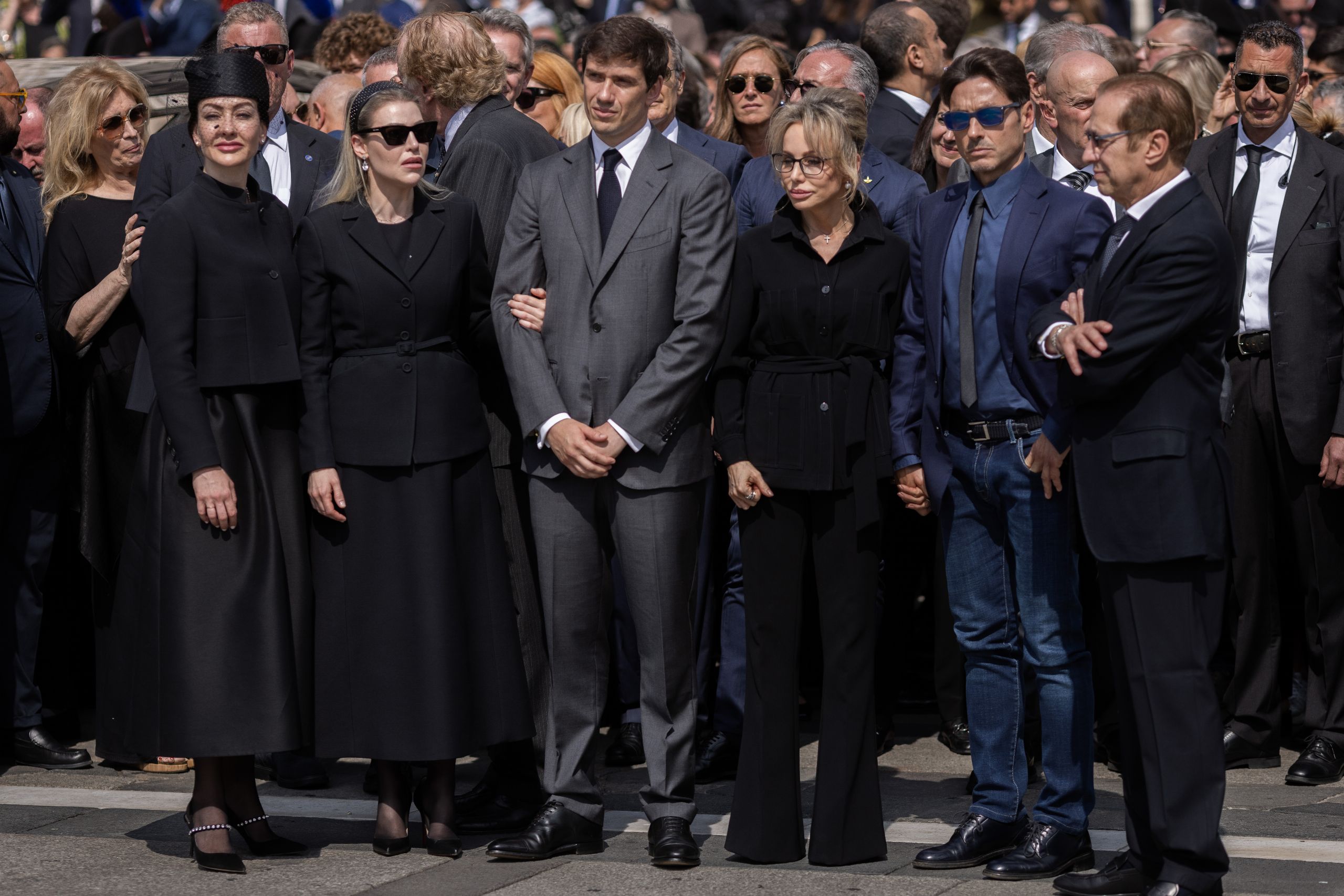Sus restos han sido velados de forma estrictamente privada en su villa de Arcore, en la periferia milanesa, pero tres días después de su muerte fueron acogidos y celebrados con un funeral por todo lo alto ante la plana mayor del Estado, como él habría querido. En la foto: los hijos del fallecido Eleonora, Barbara, Luigi, Marina y Pier Silvio.