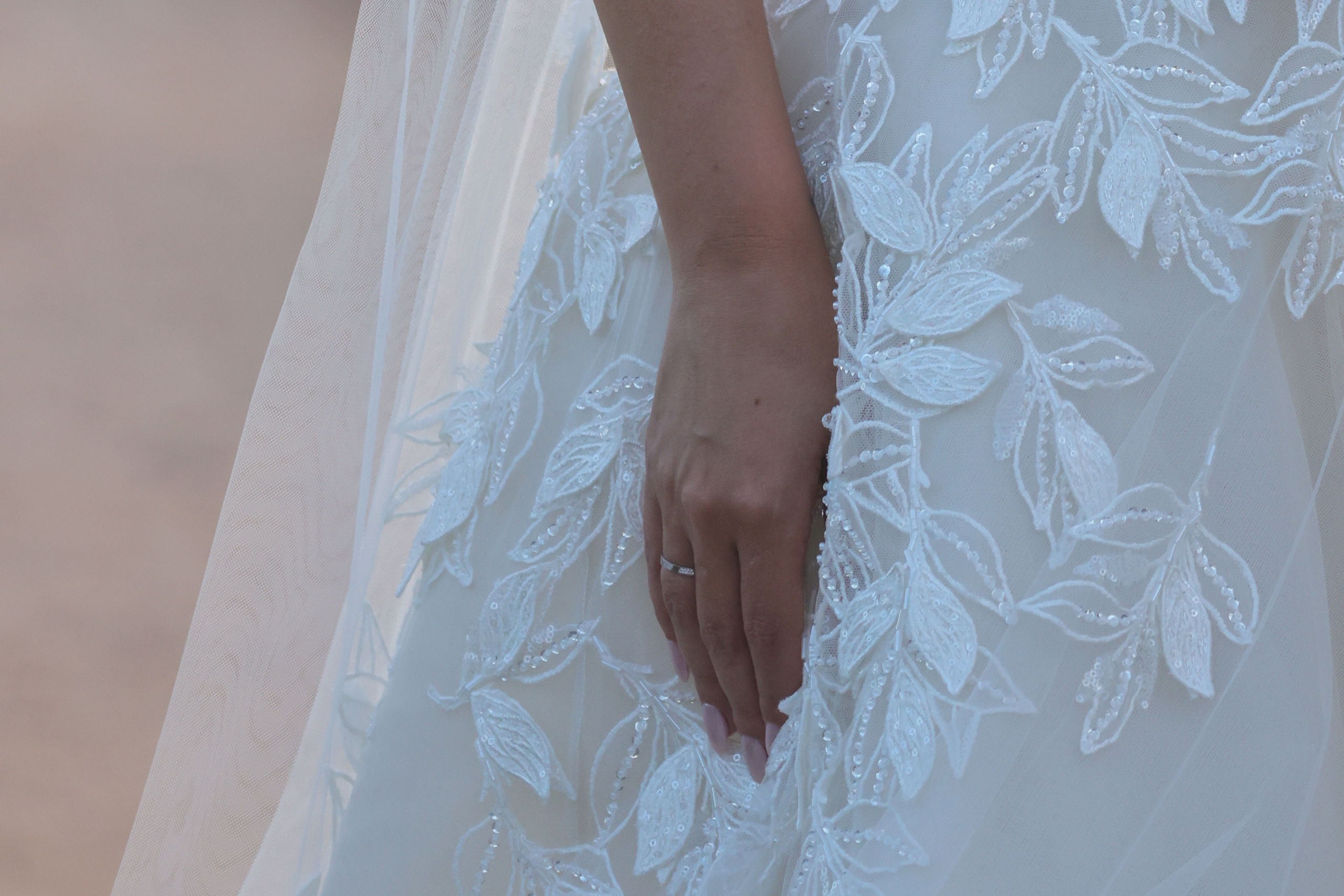 Como no podía ser de otra manera, para esta boda de ensueño Edurne lució un vestido de película: un palabra de honor con bordados simulando flores y con un impresionante velo.