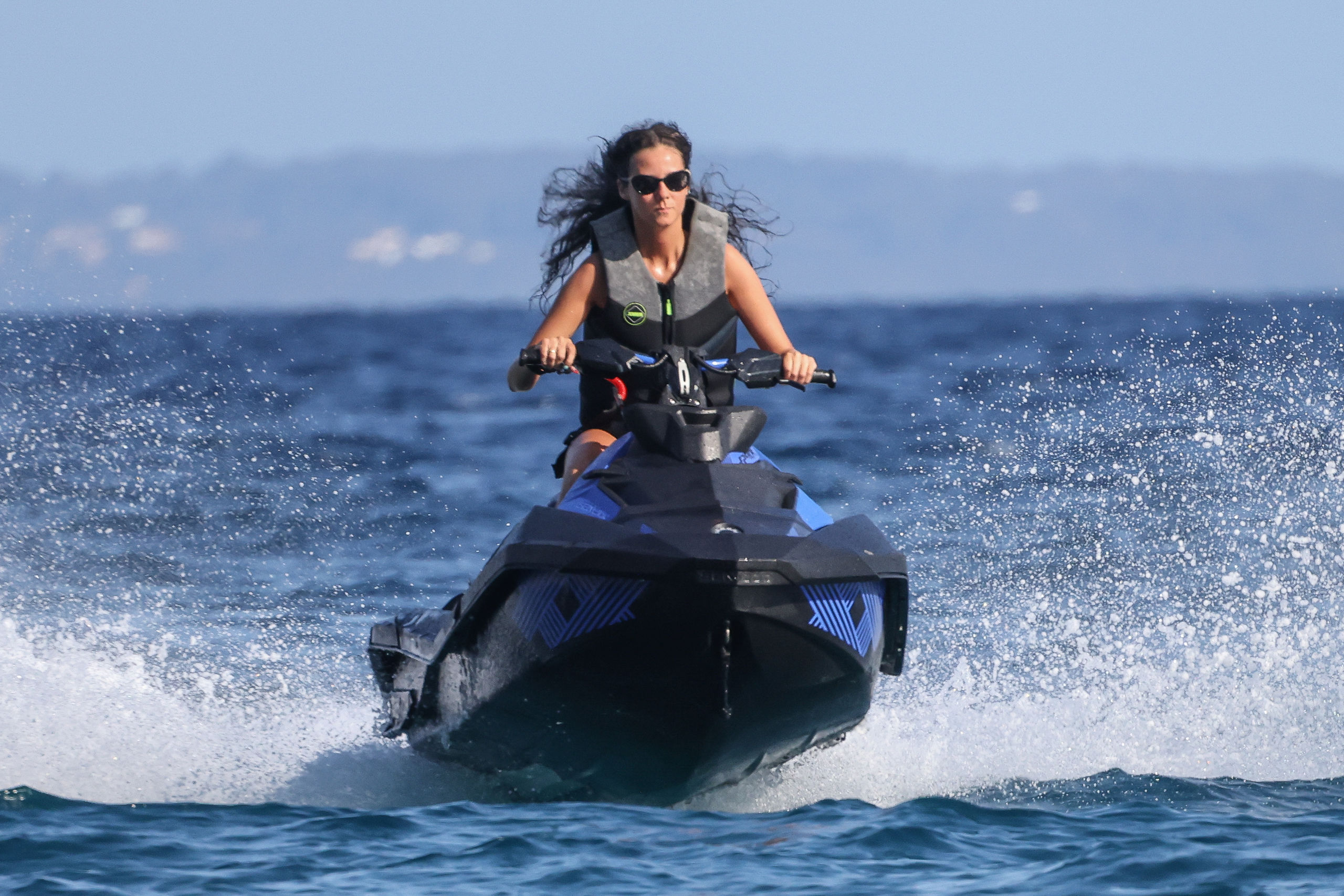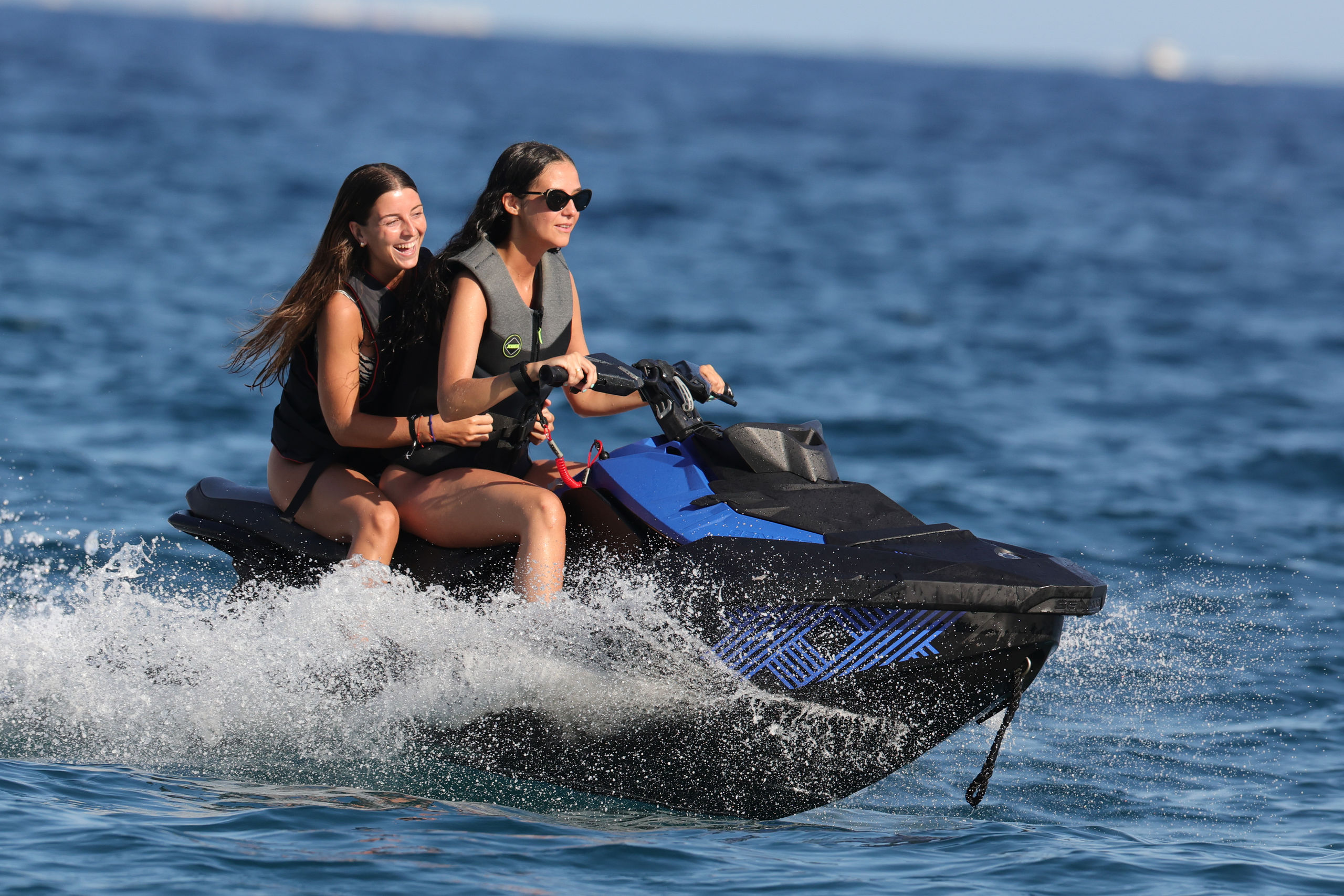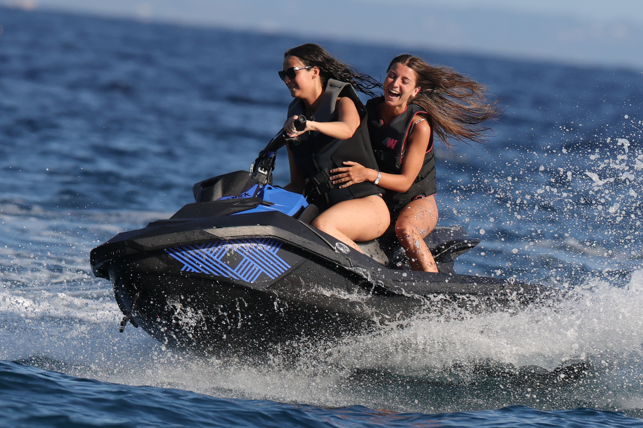 Relajada y sonriente, Victoria no dudó en probar la experiencia de conducir una moto acuática y, tras atender las explicaciones de la tripulación del barco y con el chaleco salvavidas reglamentario, se lanzó a dar una vuelta en solitario muy emocionada. Una vez dominado el vehículo, recogía a una de sus amigas para, ahora sí con más seguridad, volar sobre las olas a toda velocidad.