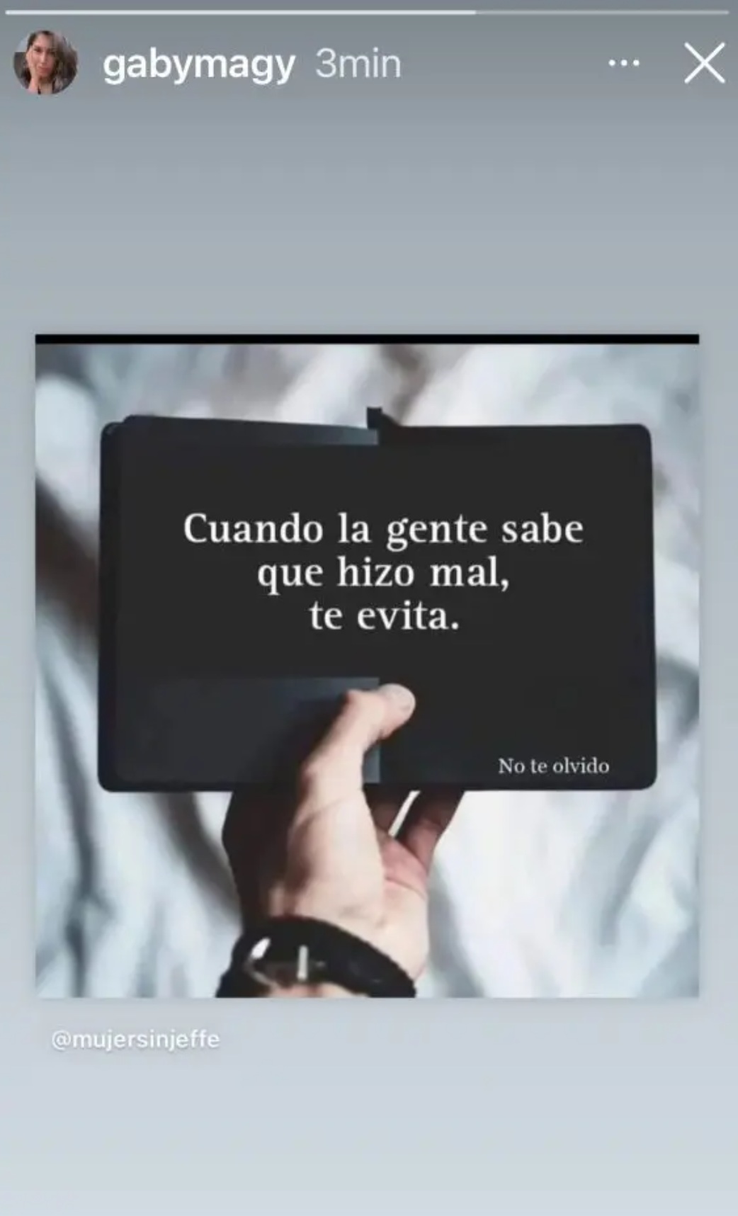 Esta no es la primera vez que Gabriela utiliza las redes sociales para mandar mensajes misteriosos. Hace unos días, coincidiendo con la reaparición de Chabeli Navarro, que confesó haberse quedado embarazada del artista y más tarde haber abortado, publicó otro texto en su perfil de Instagram: "No permitas que tus heridas te transformen en alguien que no eres".