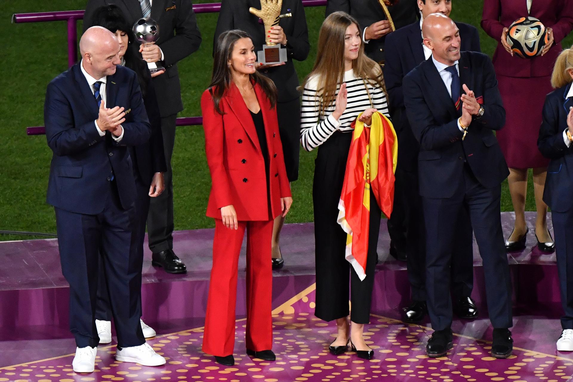 La infanta Sofía y Letizia participaron en las celebraciones de la selección española femenina de fútbol tras imponerse a Inglaterra en la final del Mundial de Fútbol femenino en el Accor Stadium en Sídney, Australia, este domingo.