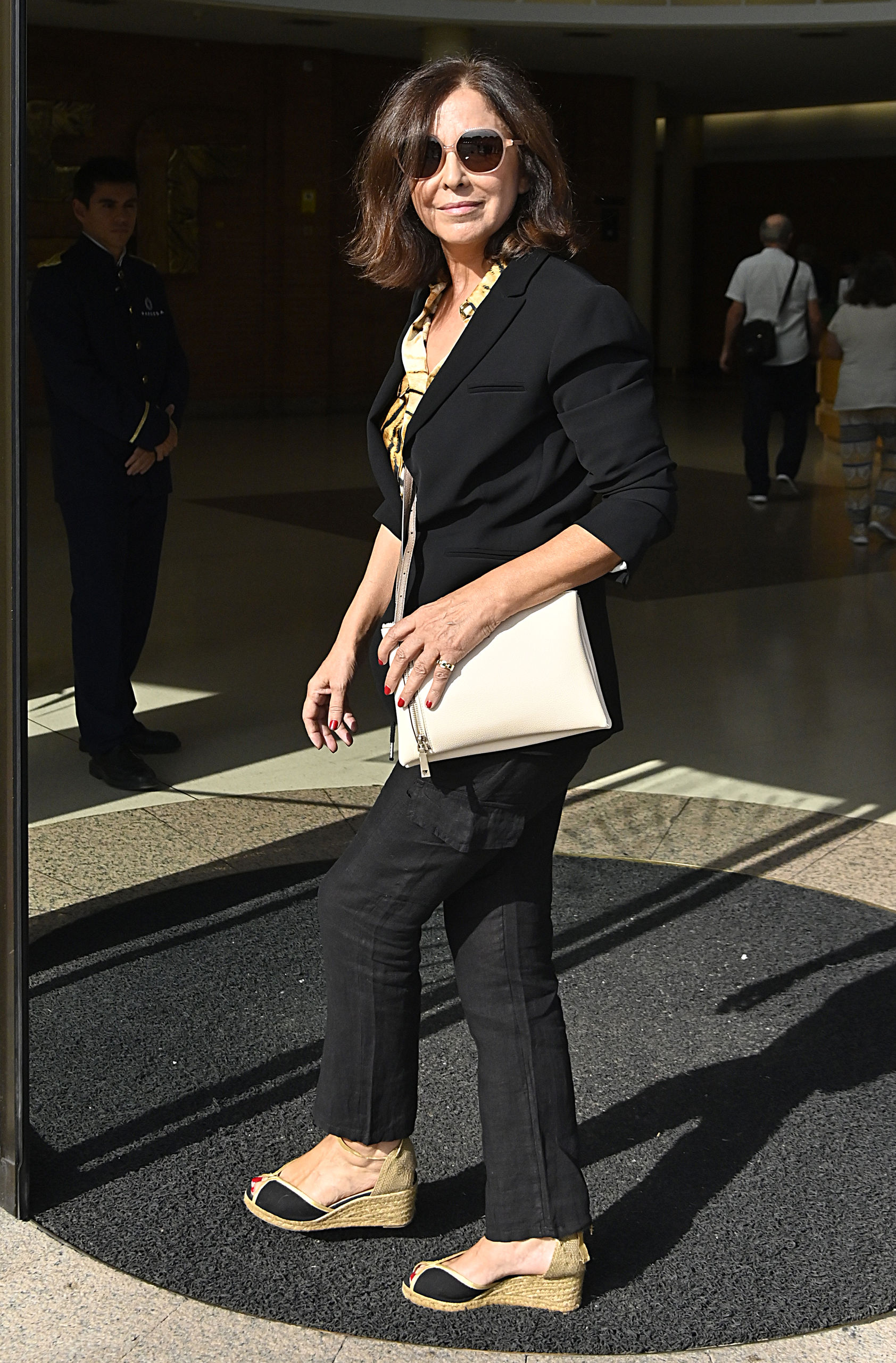La expresidenta de la Comunidad de Madrid a su llegada al tanatorio.