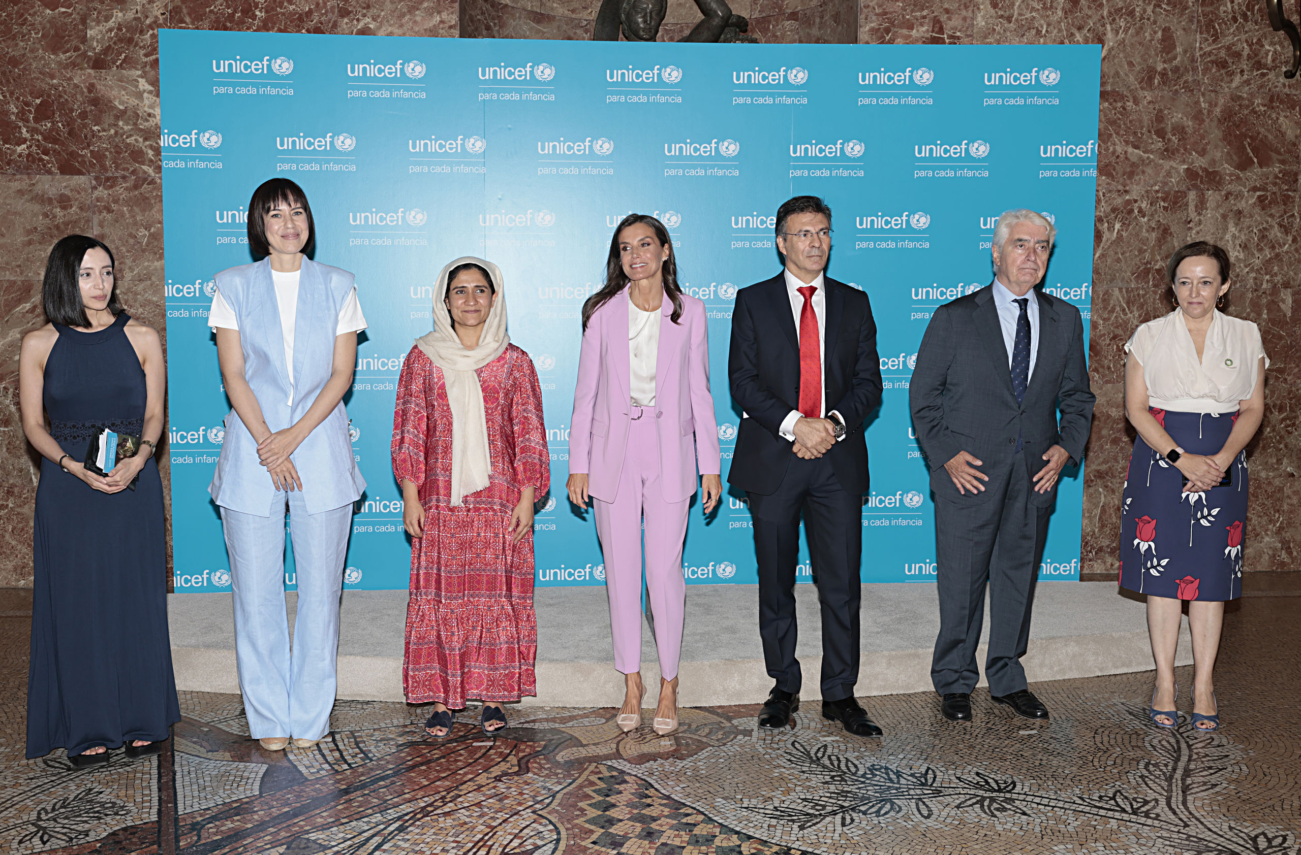 La monarca, que retoma su agenda oficial tras el ingreso de la Princesa Leonor en la Academia Militar de Zaragoza y la marcha de la Infanta Sofía a Gales para estudiar el Bachillerato Internacional en el UWC Atlantic College, ha coincidido con Sara Carbonero en la entrega de Premios Unicef España