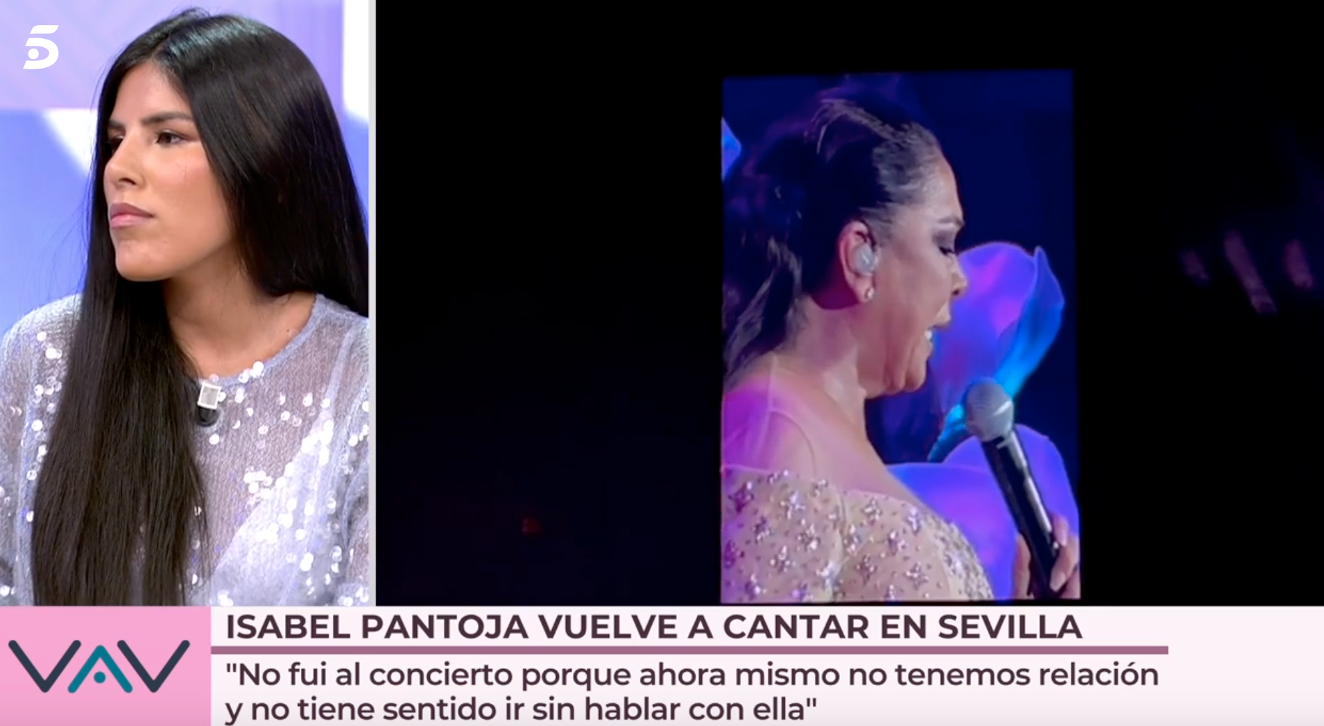 Isa Pantoja se ha 'cansado' de justificar a su madre. Y tras su sonada ausencia en el concierto de Isabel Pantoja este sábado en Sevilla, ha confirmado en Vamos a ver lo que era un secreto a voces que hasta ahora nunca había querido admitir en público: No tiene relación con su progenitora y es consciente de que sería casi un milagro que la tonadillera asistiese a su boda con Asraf Beno el próximo 13 de octubre.