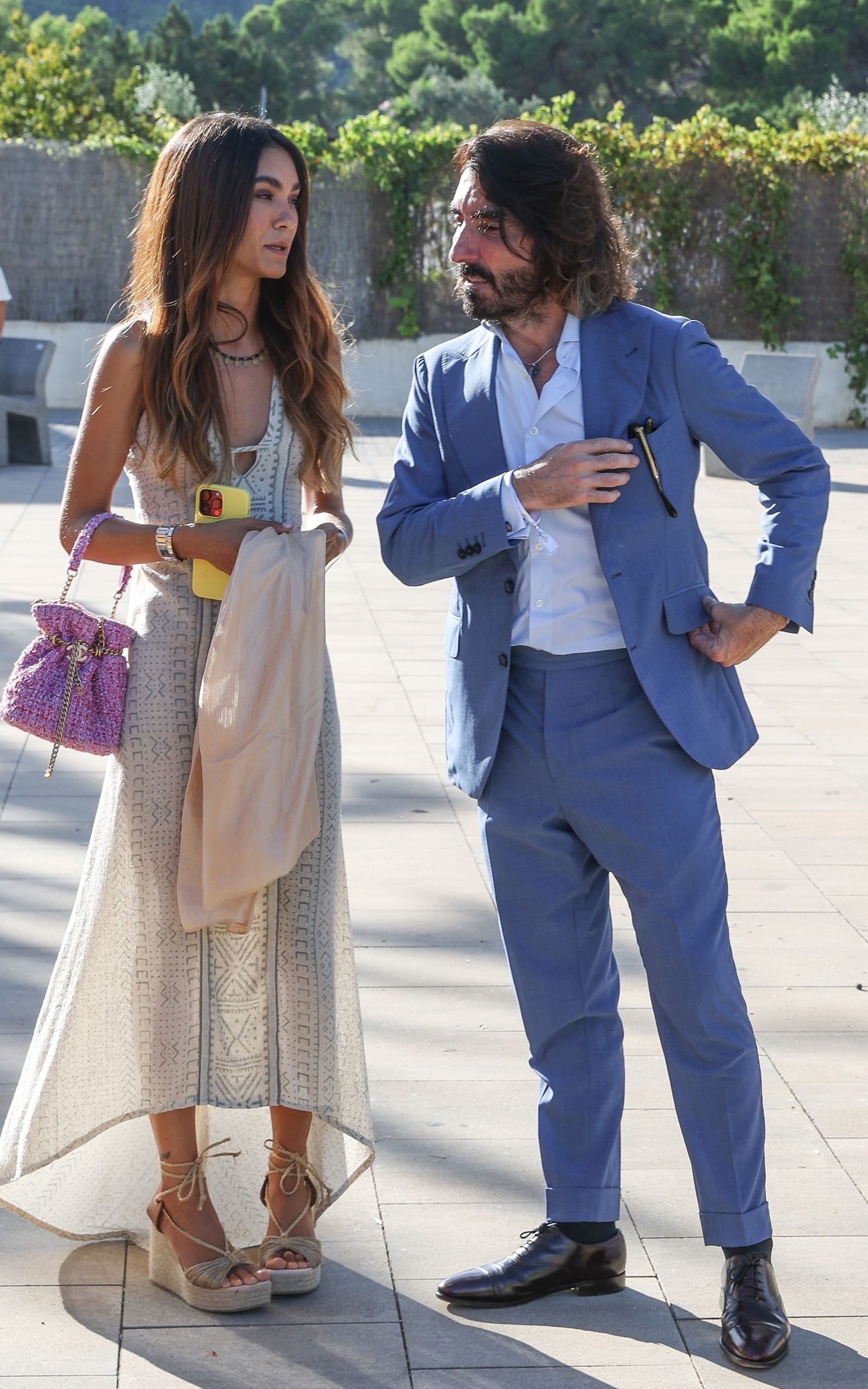 Celina lució un sencillo vestido blanco de tirantes y el novio eligió el mismo color para su boda ibicenca.
