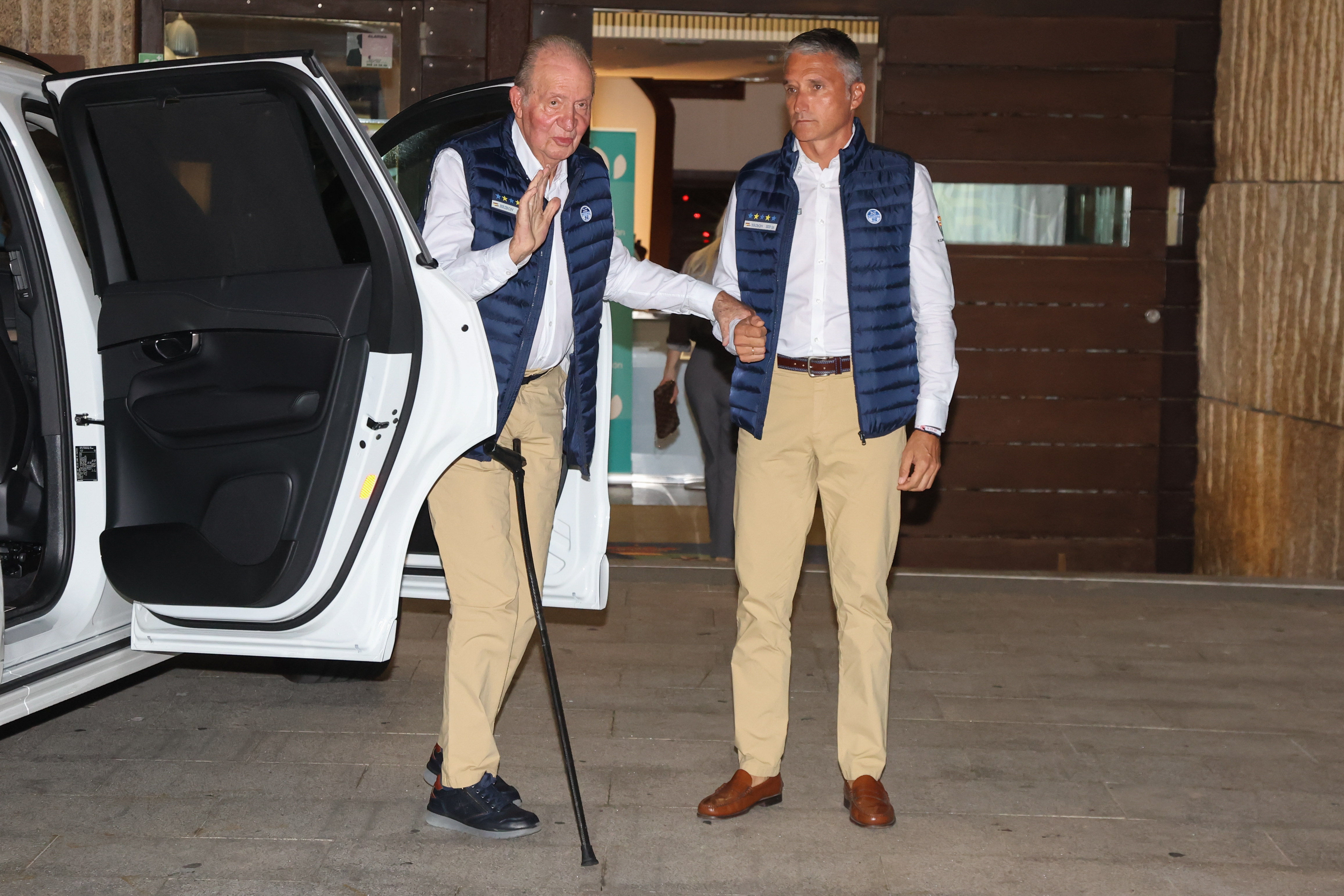 El Rey Juan Carlos acudía al Real Club Náutico de Sanxenxo para cenar en compañía de toda su tripulación el viernes por la noche, después de haber disfrutado del inicio de las regatas y allí se reencontraba con la Infanta Elena, quien se dejó ver bastante feliz junto a él.