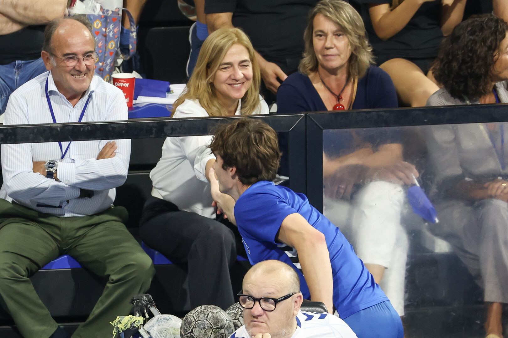 La hermana de Felipe VI, la infanta Cristina de Borbón, no se perdió el primer partido de su hijo Pablo contra su exequipo, el Barça de Balonmano, en el que también contó con el apoyo incondicional de su novia, Johanna Zott.