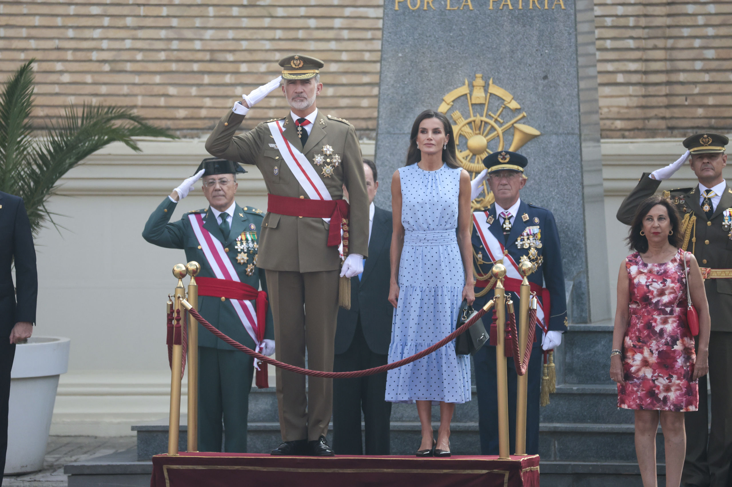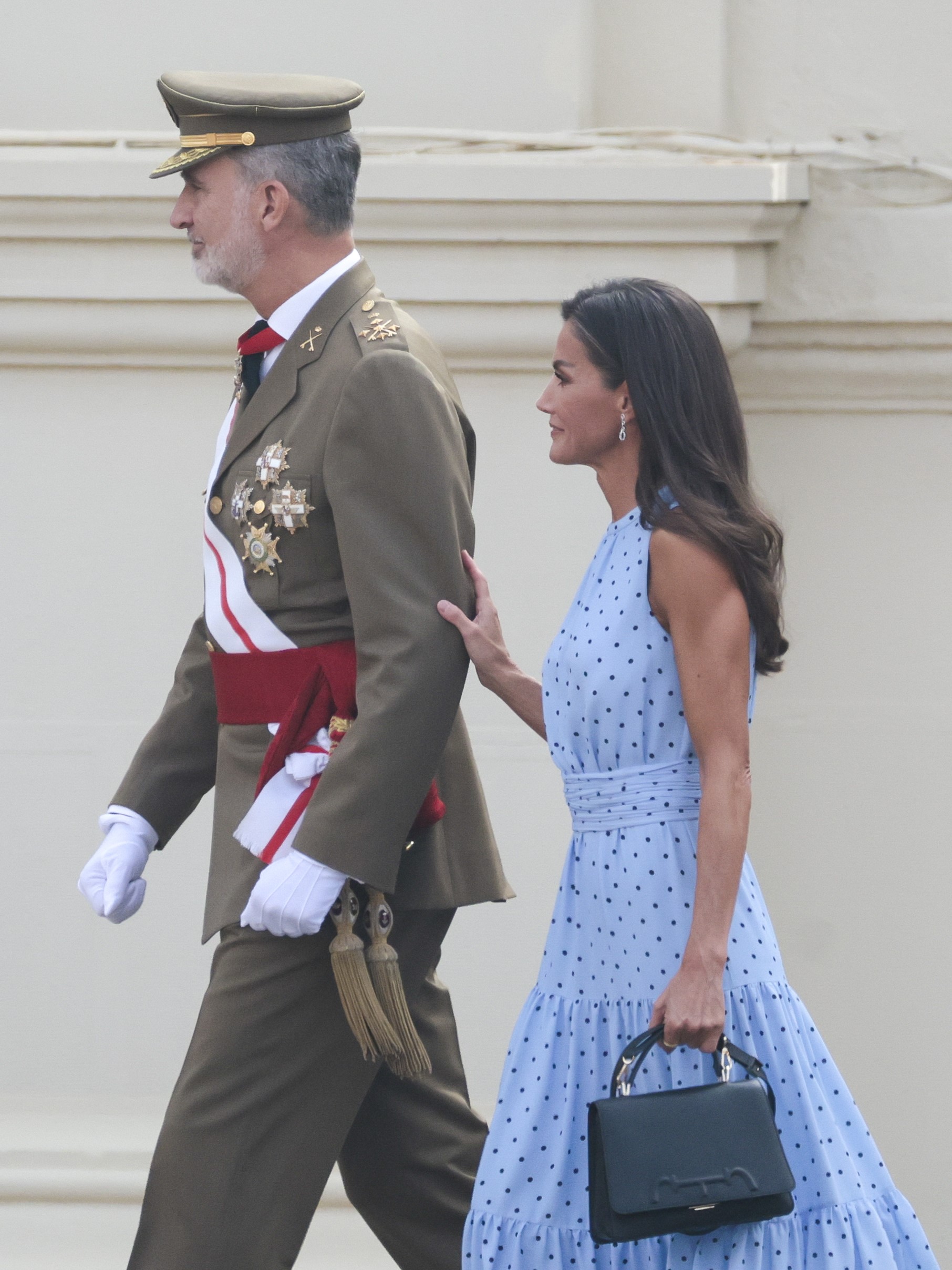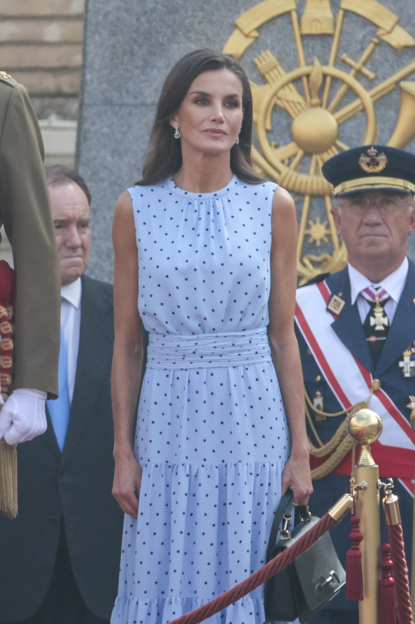 La reina Letizia rescata un favorecedor vestido de lunares para la jura de bandera de Leonor