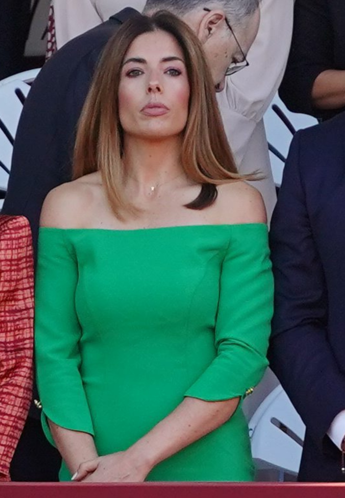 Bedman ha acaparado todas las miradas de los asistentes con un espectacular vestido en color verde, quizá como homenaje al partido de su marido.