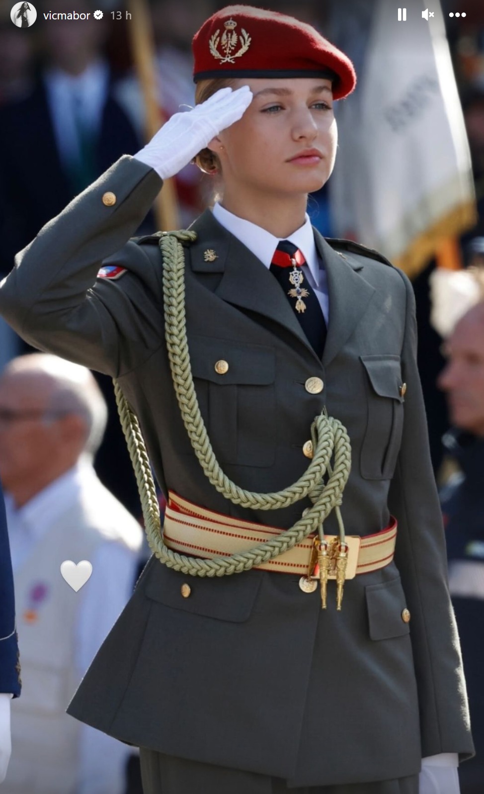Con motivo del día de la Hispanidad, la hija de la Infanta Elena y Jaime de Marichalar ha compartido un nutrido carrusel de fotografías en su cuenta de Instagram para presumir con sus seguidores de una muy especial, la de la princesa Leonor vestida con el uniforme de gala del Ejército de Tierra durante el tradicional Desfile del 12 de octubre.