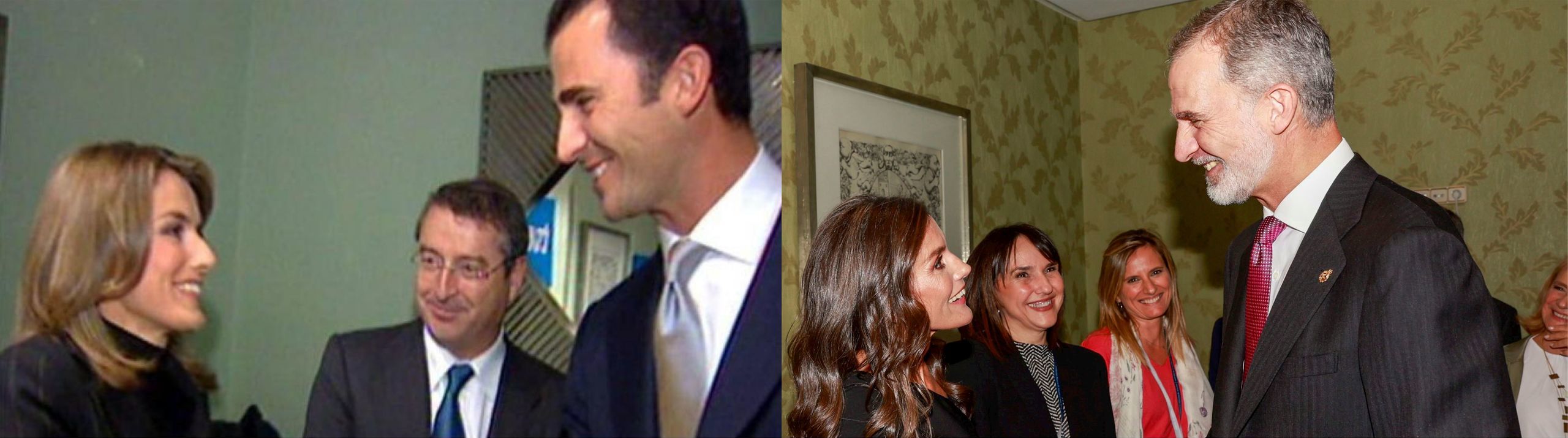 Durante la jornada del viernes, los reyes reeditaron el primer saludo que ambos protagonizaron hace 20 años en el hotel Reconquista de Oviedo, cuando entonces doña Letizia era periodista de TVE, días antes de que se anunciara su noviazgo. La fotografía fue captada al término de la ceremonia de los Premios Princesa de Asturias cuando don Felipe y doña Letizia hacen la tradicional visita al equipo de TVE en uno de los salones del hotel de la capital ovetense.