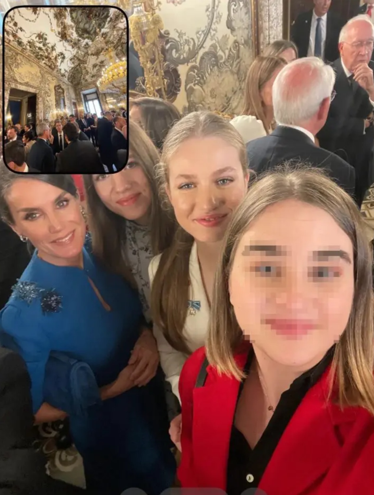 Unos días después de la jura de la Constitución de la princesa Leonor en el Congreso de los Diputados, continúan saliendo a la luz fotografías inéditas de este histórico día. Si hace unas horas podíamos ver unas imágenes de la heredera al trono llegando a la fiesta privada por su cumpleaños que se organizó en El Pardo con gran parte de su familia, ahora se han publicado una fotografía en la que aparece posando para un selfie junto a su madre y su hermana. Y es que algunos de los invitados al Palacio Real, donde Felipe VI otorgó el collar de la Orden de Carlos II a su hija, aprovecharon la ocasión para hacerse fotos con la Familia Real.