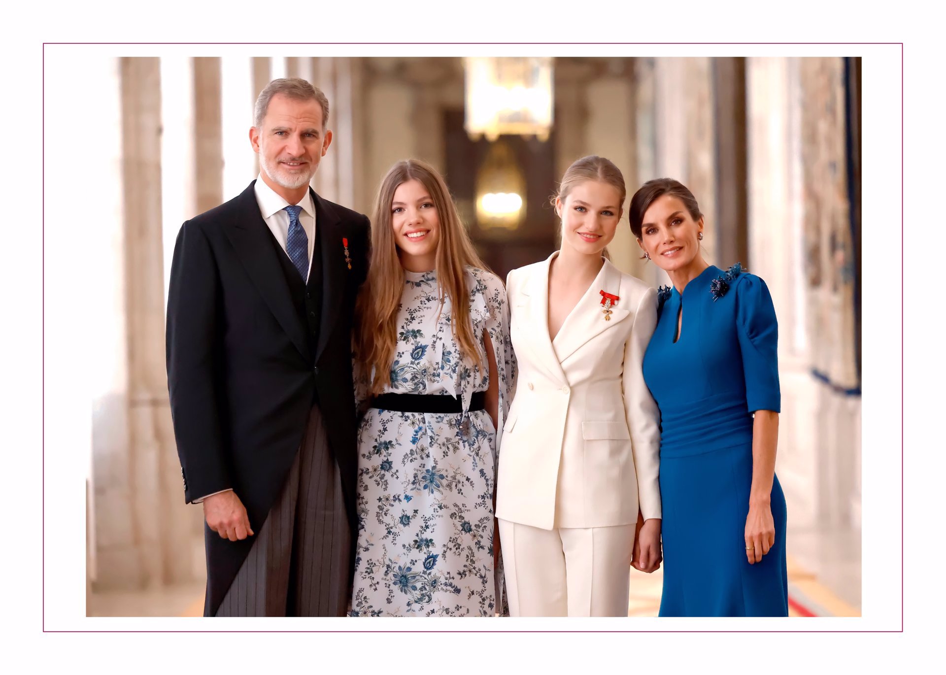 En la instantánea elegida podemos ver al rey Felipe VI, la reina Letizia, la princesa Leonor y la infanta Sofía posar juntos en la comida que se celebró tras la ceremonia de jura en el Congreso de los Diputados y que tuvo lugar en el Palacio Real.
